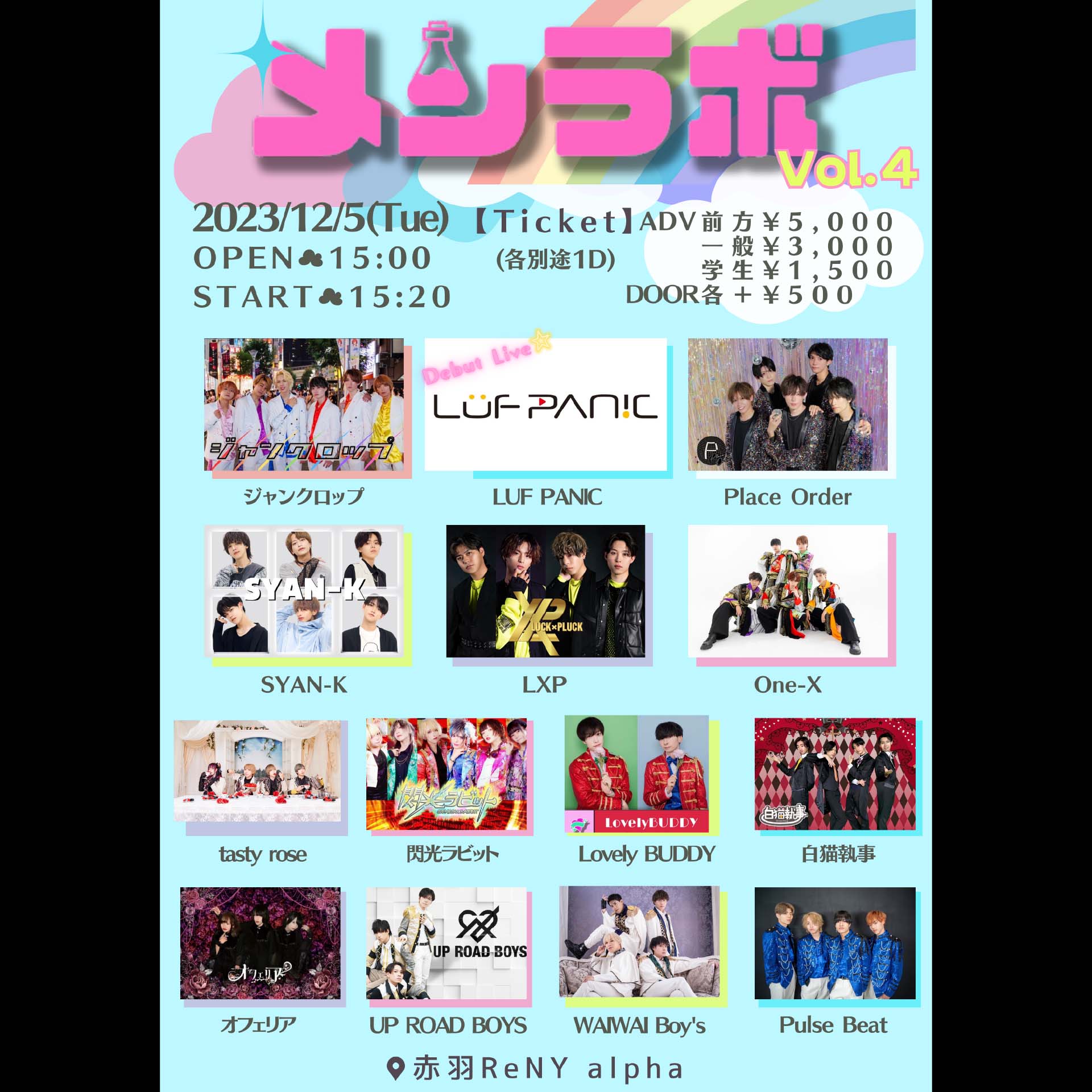 ジャンクロップ/One-X/Place Order/WAIWAI Boy’s/SYAN-K/LXP/LovelyBUDDY/tasty rose/UP ROAD BOYS/オフェリア/閃光ラビット/Pulse Beat/白猫執事/LUF PANIC