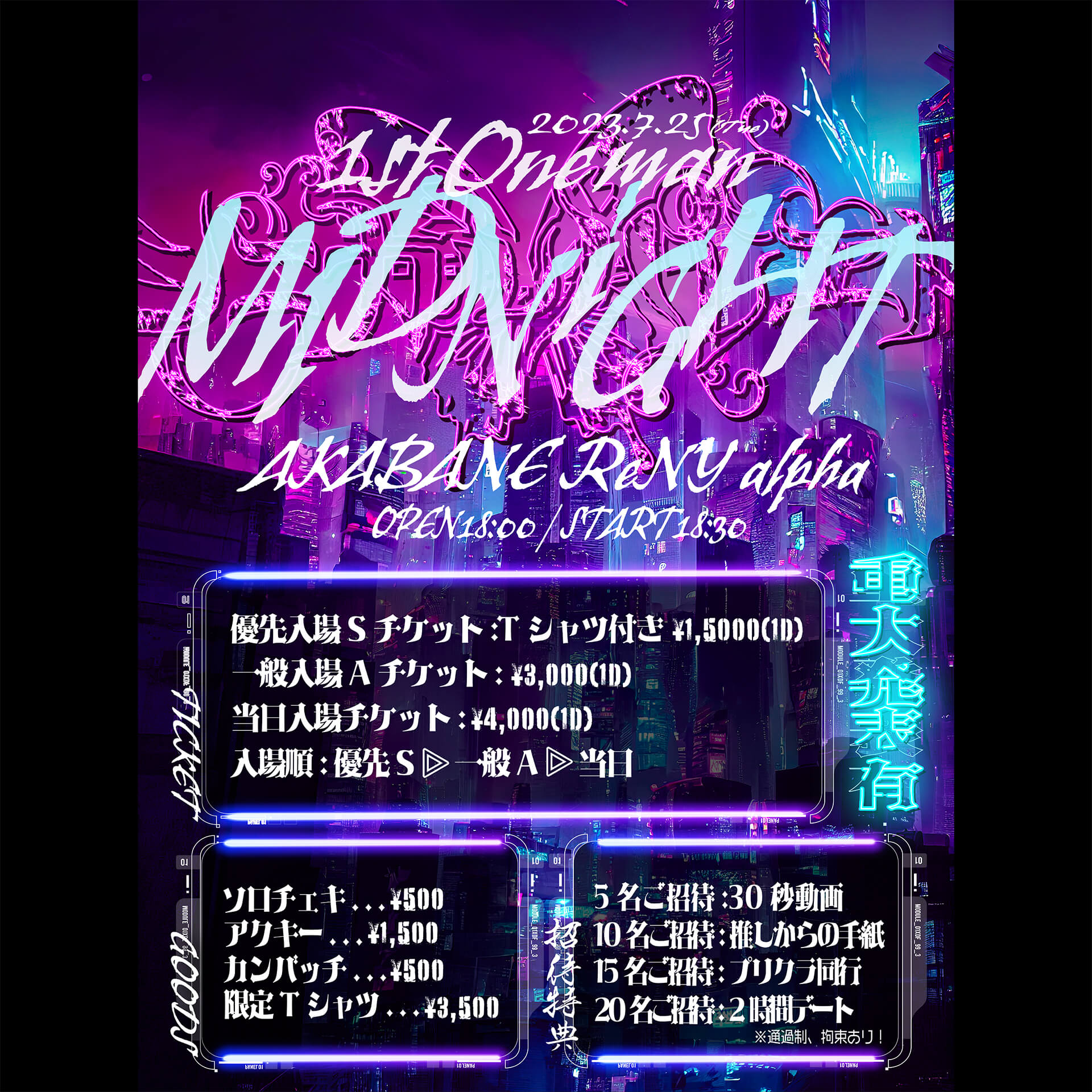 優先¥15,000 / ¥-,― (D代別途要)一般¥3,000 / ¥4,000 (D代別途要)