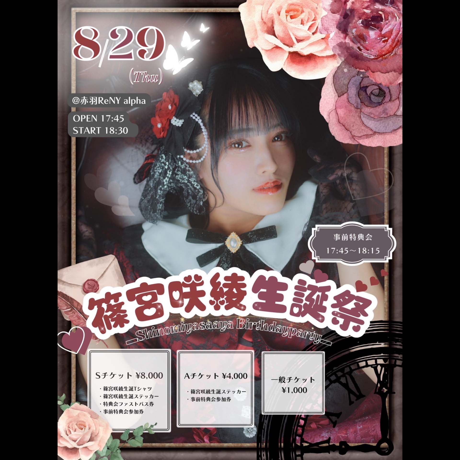 S¥8,000 / ¥-,― (D代別途要/特典あり)A¥4,000 / ¥-,― (D代別途要/特典あり)一般¥1,000 / ¥-,― (D代別途要)