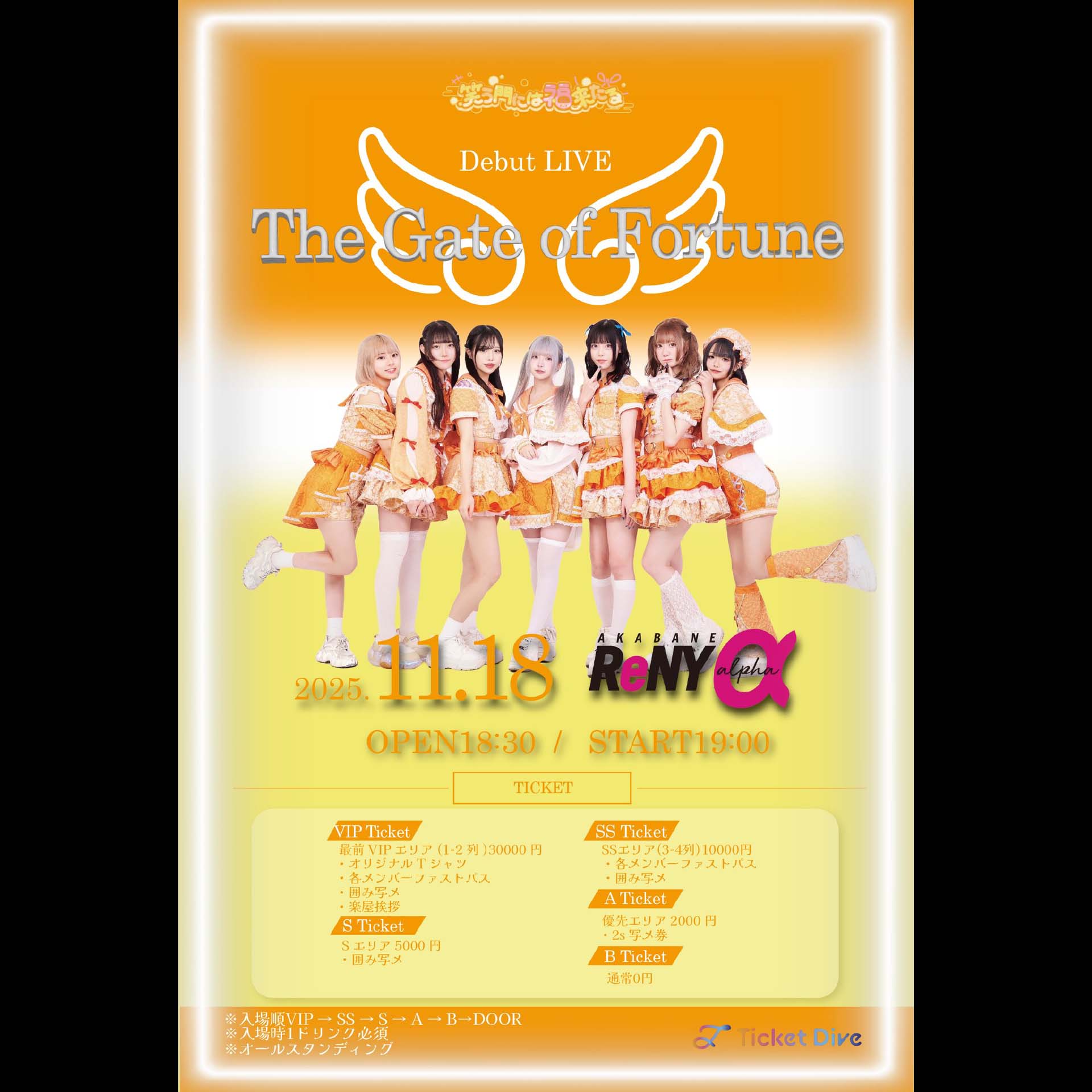 VIP¥30,000 / ¥-,― (D代別途要)SS¥10,000 / ¥-,― (D代別途要)S¥5,000 / ¥-,― (D代別途要)優先(A)¥2,000 / ¥-,― (D代別途要)通常(B)¥0 / ¥-,― (D代別途要)
