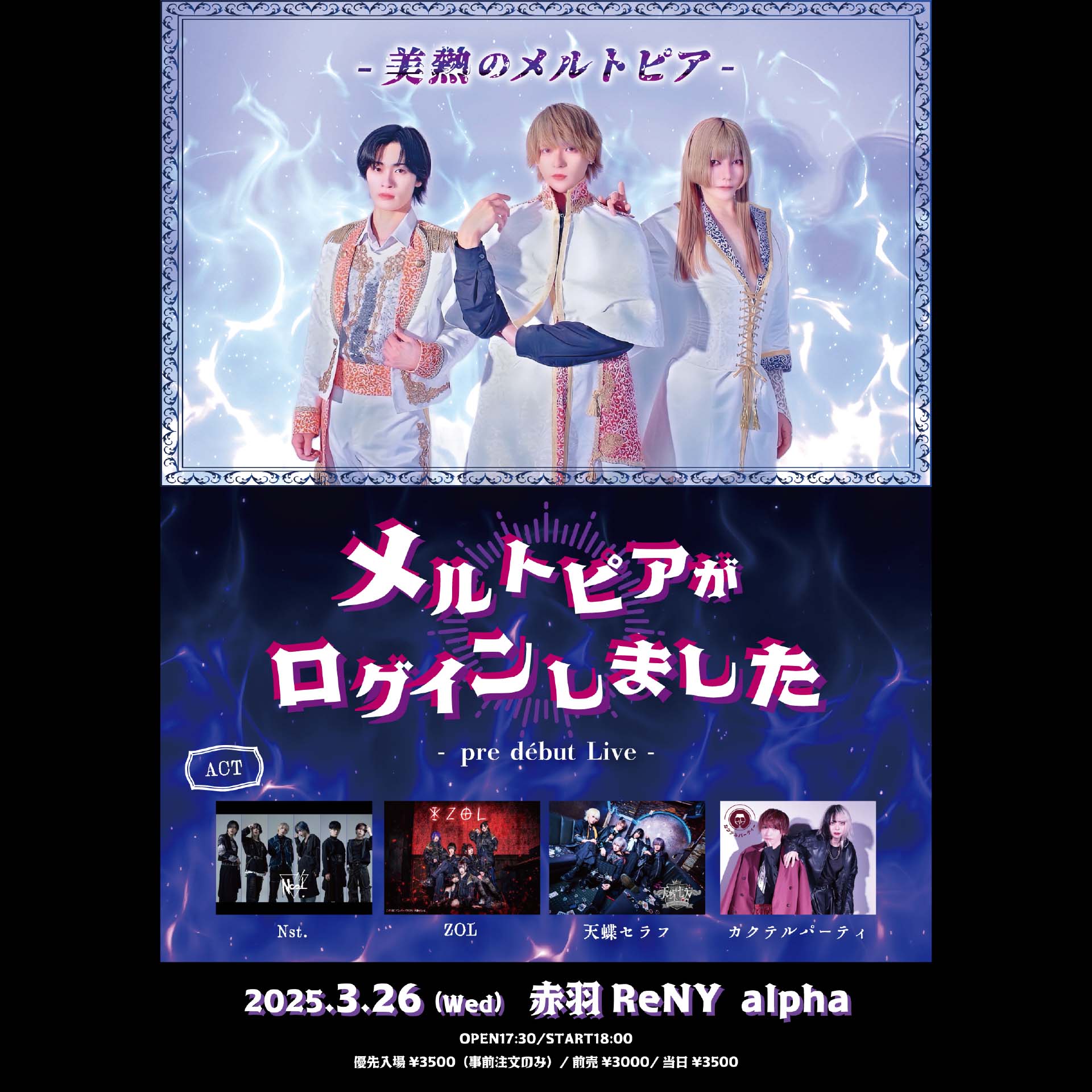 優先入場¥3,500 / ¥-,― (D代別途要)一般¥3,000 / ¥3,500 (D代別途要)