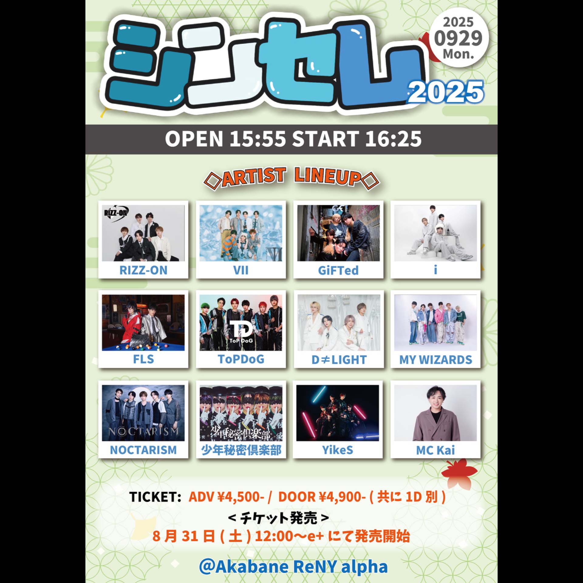 RIZZ-ON/VII/GiFTed/i/FLS/ToPDoG/D≠LIGHT/MY WIZARDS/NOCTARISM/少年秘密倶楽部/YikeS/MC Kai