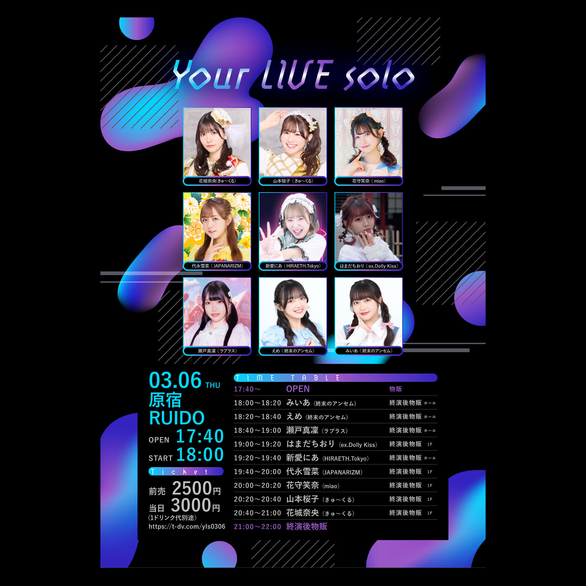 花城奈央(きゅ~くる)/山本桜子(きゅ~くる)/花守笑奈(miao)/代永雪菜(JAPANARIZM)/新愛にあ(HIRAETH.Tokyo)/はまだちおり(ex.Dolly Kiss)/瀬戸真凜(ラブラス)/えめ(終末のアンセム)/みいあ(終末のアンセム)