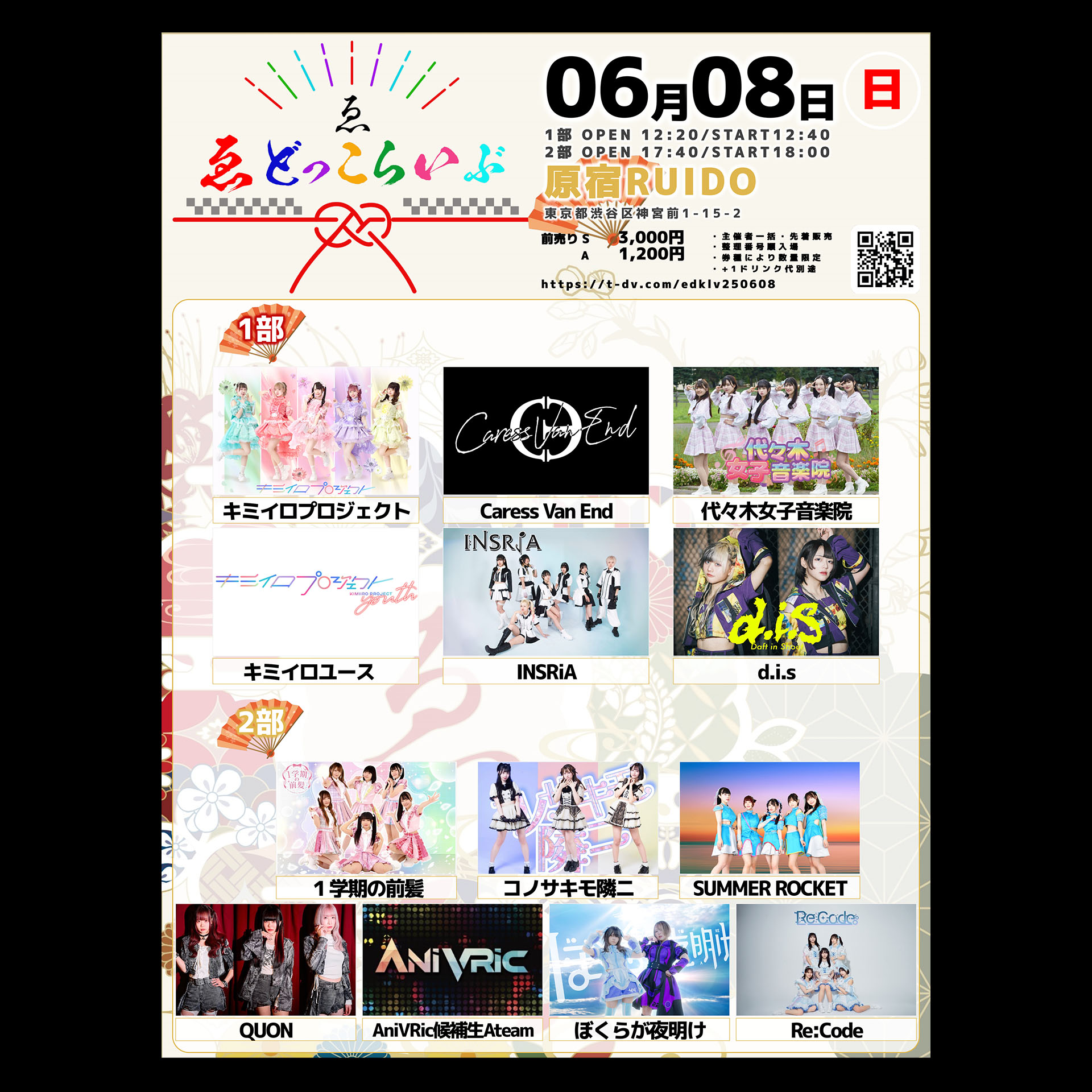 【1部】キミイロプロジェクト/キミイロユース/Caress Van End/d.i.s/INSRiA/代々木女子音楽院【2部】1学期の前髪/QUON/AniVRic候補生Ateam/ぼくらが夜明け/コノサキモ隣ニ/SUMMER ROCKET/Re:Code
