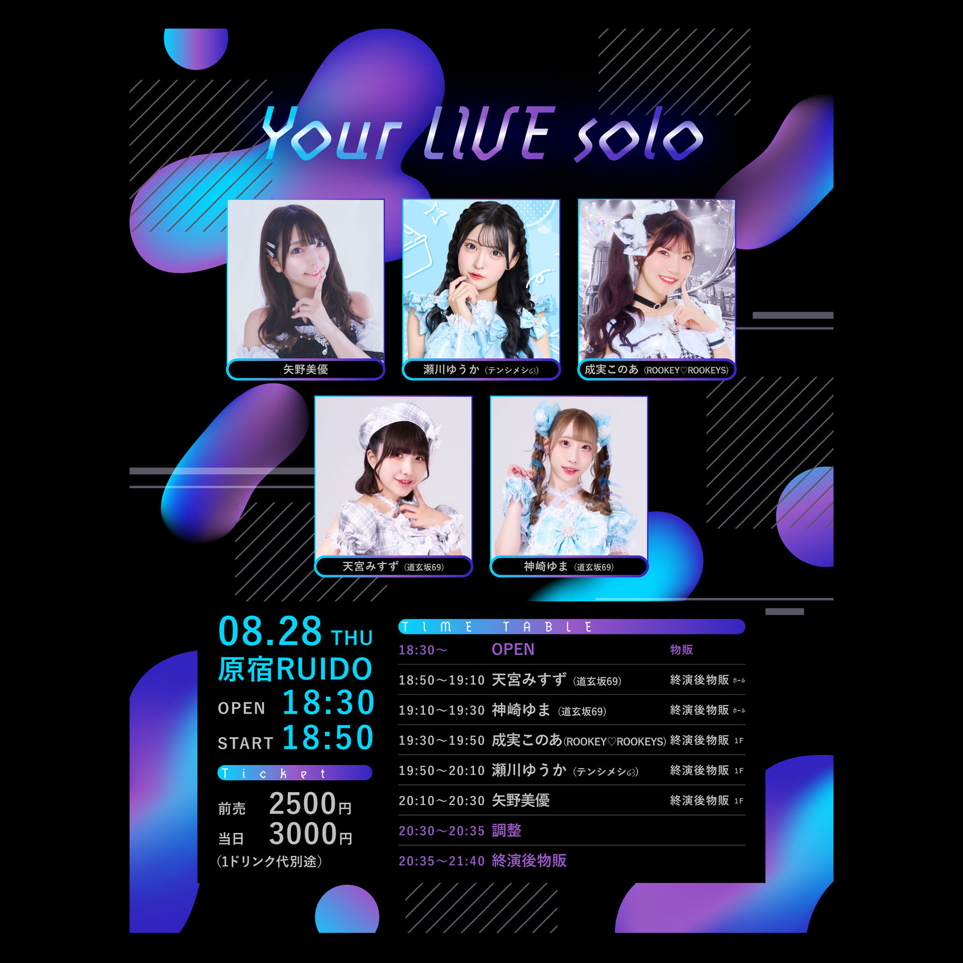 矢野美優/瀬川ゆうか(テンシメシ໒꒱)/成美このあ(ROOKEY♡ROOKEYS)/天宮みすず(道玄坂69)/神崎ゆま(道玄坂69)