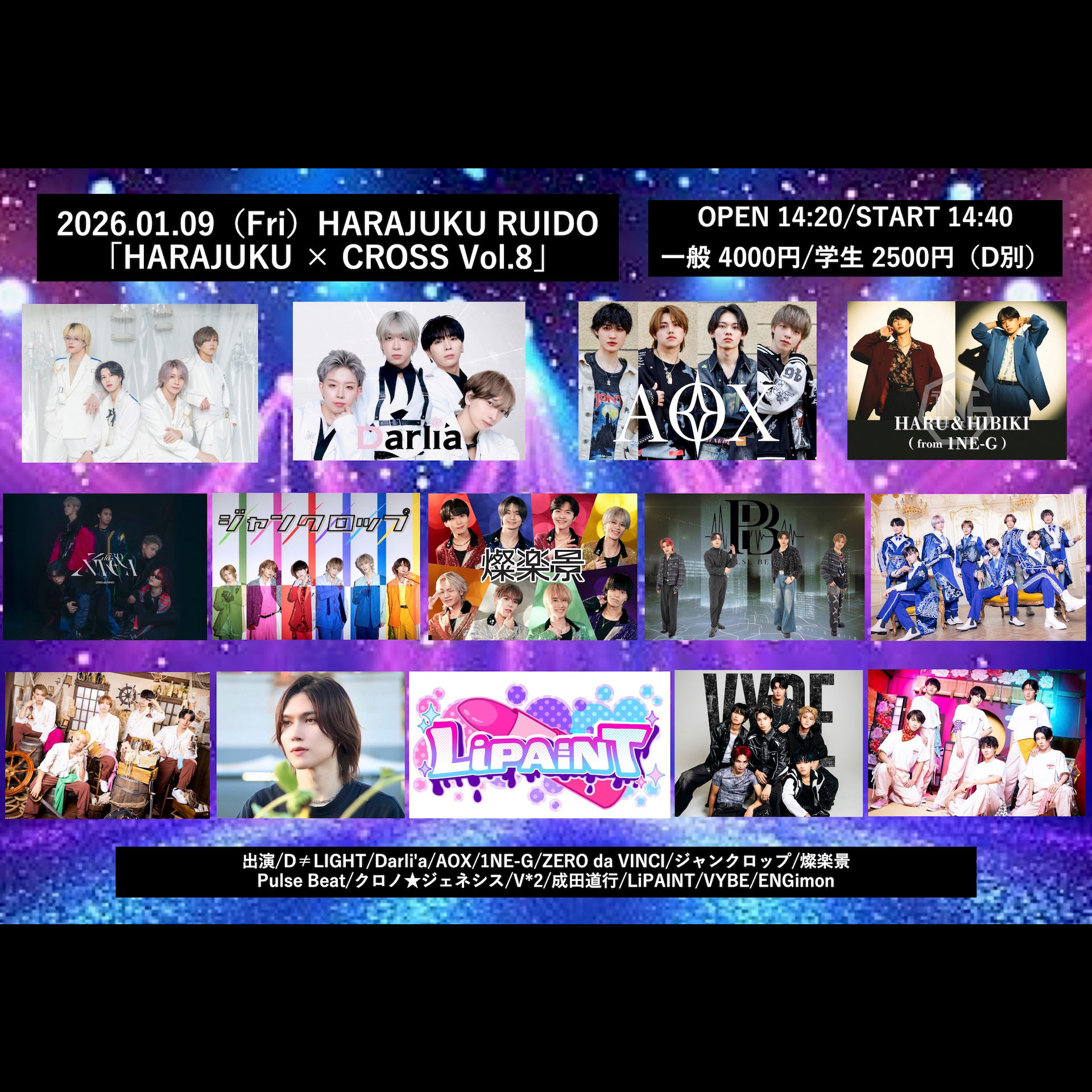 D≠LIGHT/Darli'a/AOX/1NE-G/ZERO da VINCI/ジャンクロップ/燦楽景/Pulse Beat/LiPAINT/クロノ★ジェネシス/V*2/ENGimon/成田道行/VYBE