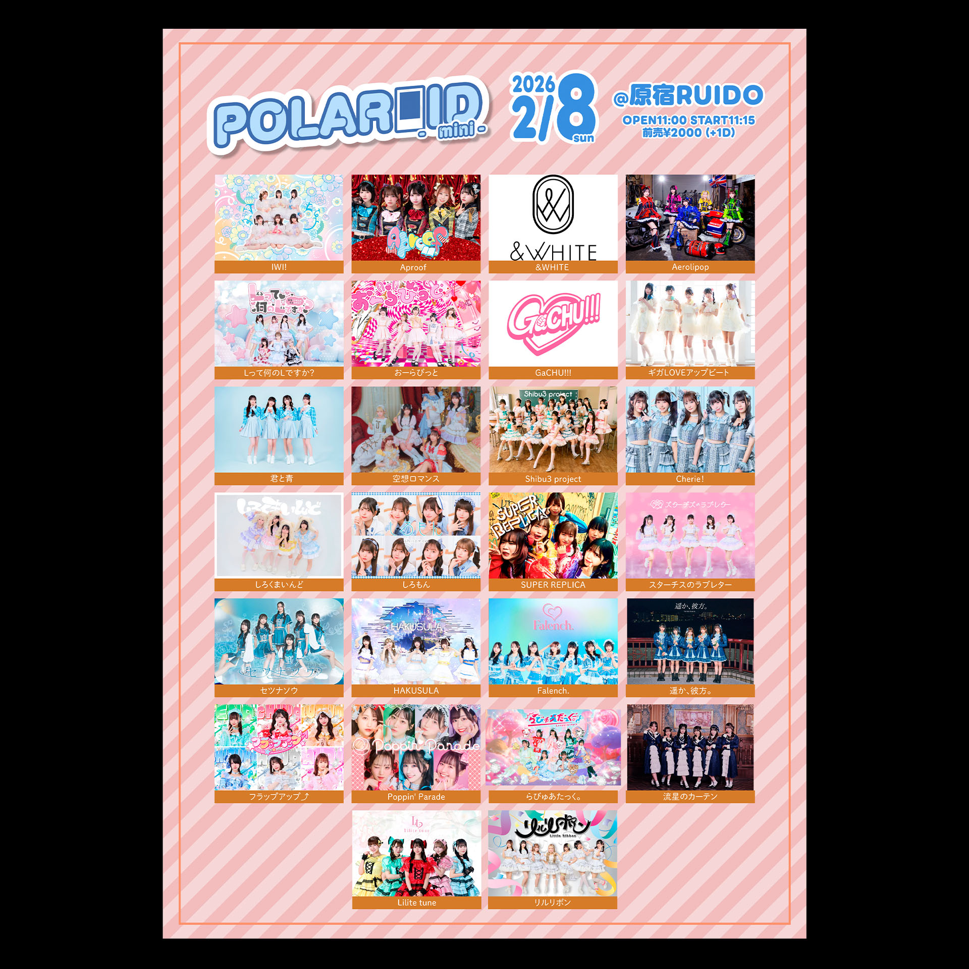 IWI!/Aproof/&WHITE/Aerolipop/Lって何のLですか?/おーらびっと/GaCHU!!!/ギガLOVEアップビート/君と青/空想ロマンス/Shibu3 project/Cherie!/しろくまいんど/しろもん/SUPER REPLICA/スターチスのラブレター/セツナソウ/HAKUSULA/Falench./遥か、/彼方。/フラップアップ⤴/Poppin' Parade/らびゅあたっく。/流星のカーテン/Lilite tune/リルリボン