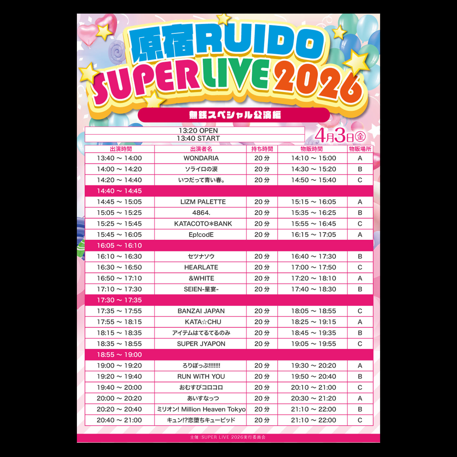 キュン!?恋堕ちキューピッド/ミリオン! Million Heaven Tokyo/あいすなっつ/おむすびコロコロ/&WHITE/SUPER JYAPON/KATACOTO*BANK/アイテムはてるてるみ/KATA☆CHU/4864./RUN WiTH YOU/SEIEN-星宴-/LIZM PALETTE/BANZAI JAPAN/いつだって青い春。/ろりぽっぷ!!!!!!!/セツナソウ/Ep!codE/ソライロの涙/HEARLATE/WONDARIA