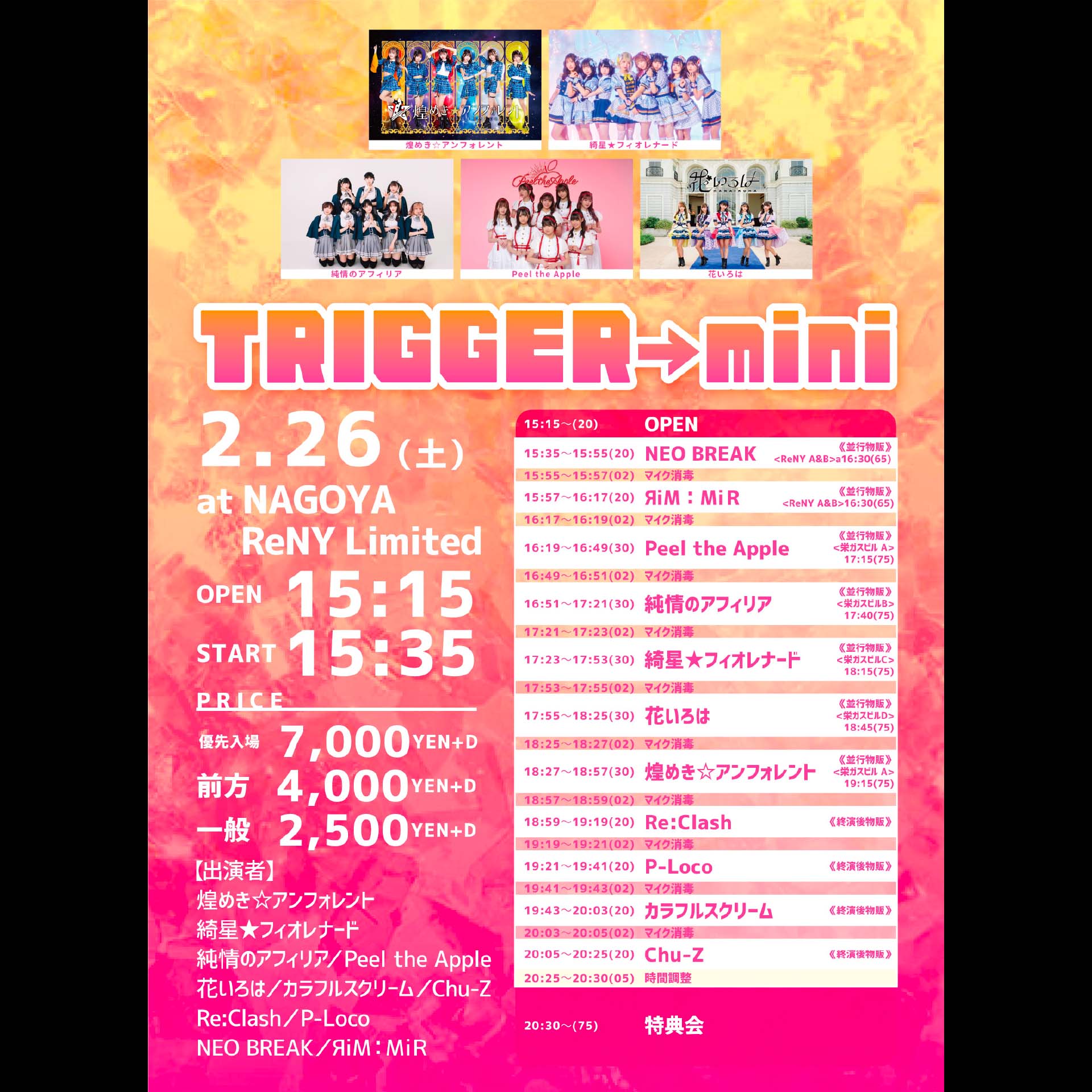 優先¥7,000 / 前方¥4,000 / 一般¥2,500 (D代別途要)