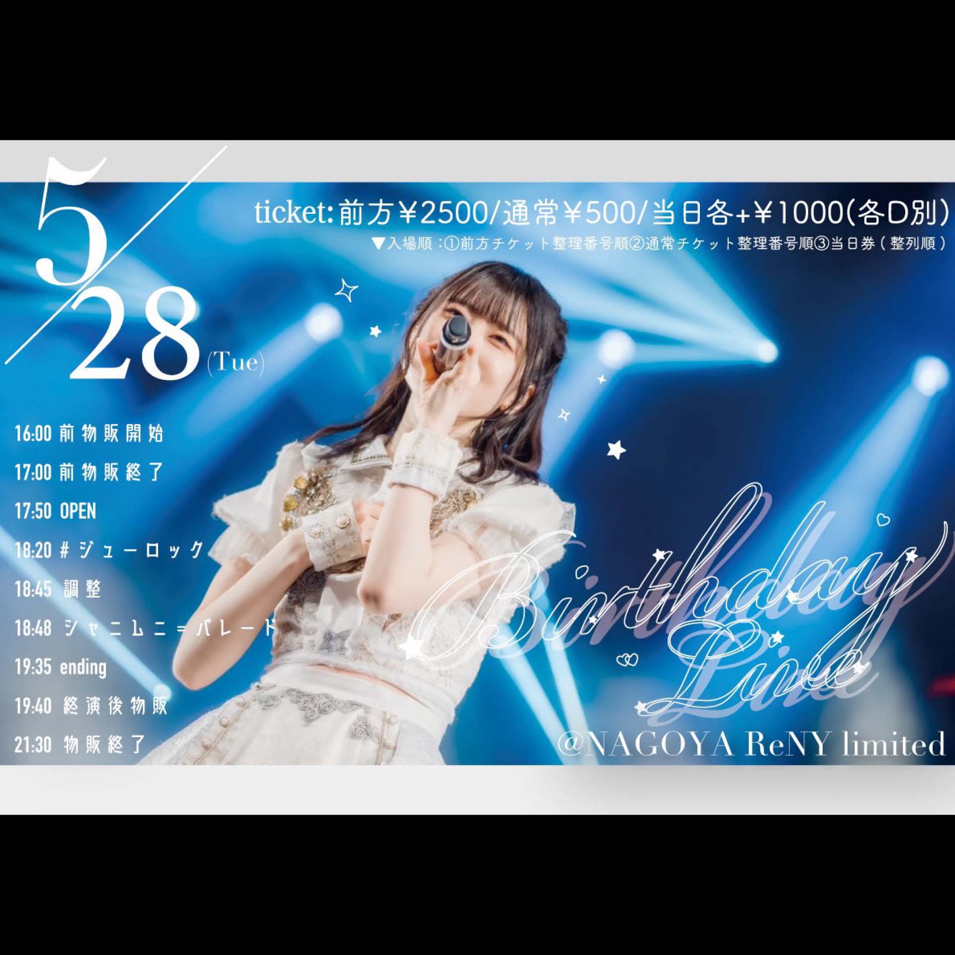 前方チケット¥2,500 / 通常チケット¥500 (D代別途要)