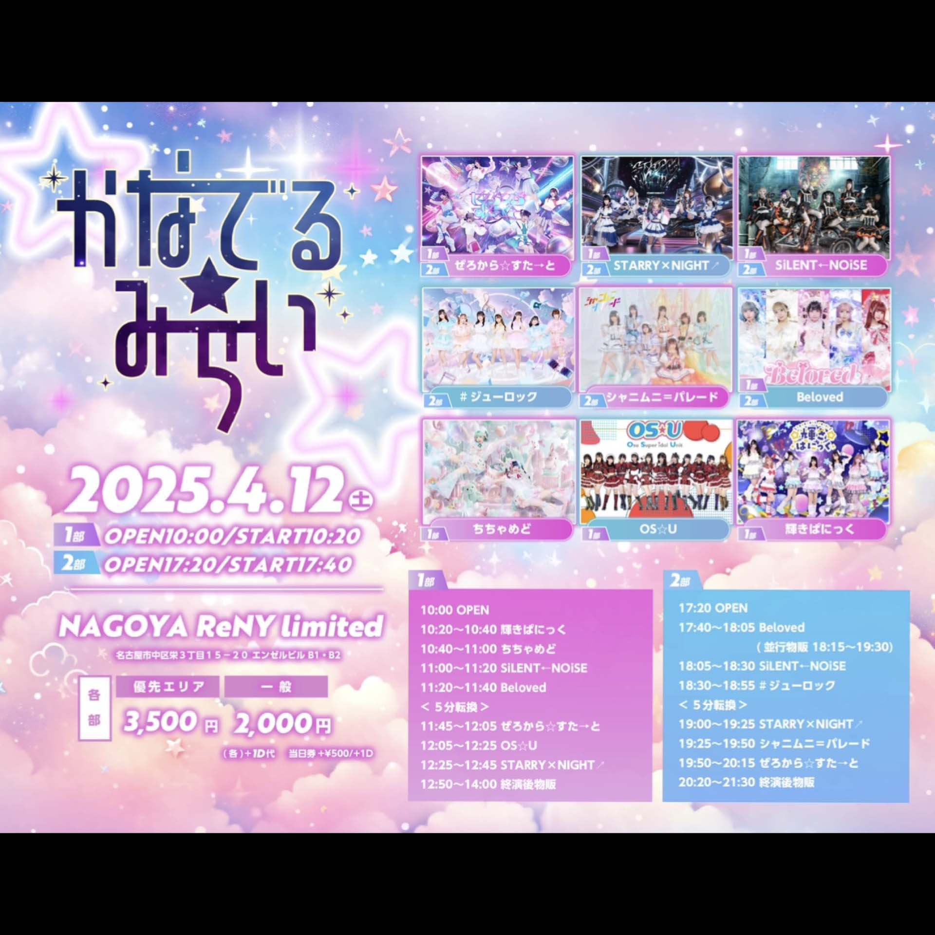 ぜろから☆すた→と / STARRY×NIGHT↗︎ / SiLENT←NOiSE. / OS☆U / 輝きぱにっく / ちちゃめど / Beloved