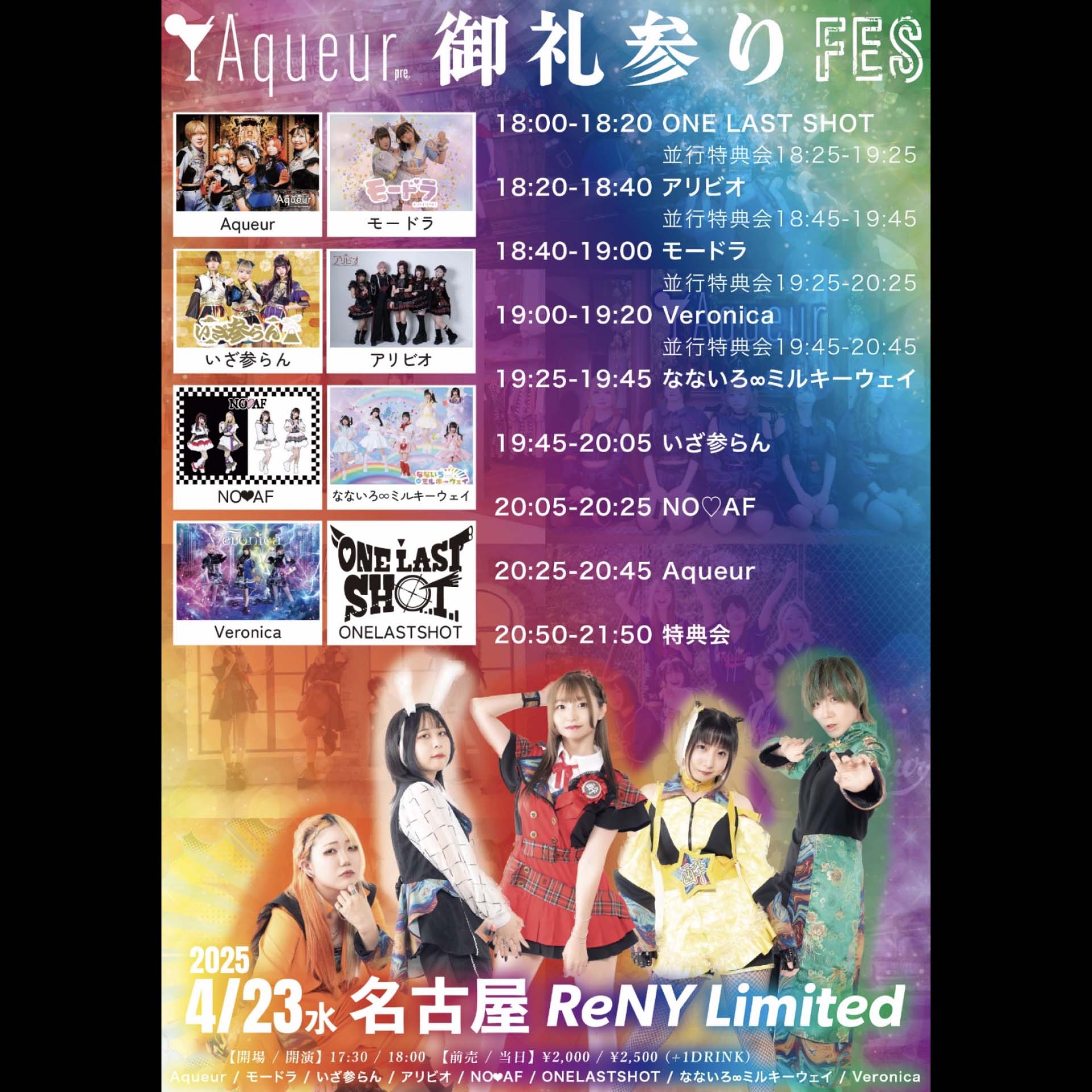 Aqueur / モードラ / いざ参らん / NO❤︎AF / なないろ∞ミルキーウェイ / Veronica / アリビオ / ONE LAST SHOT