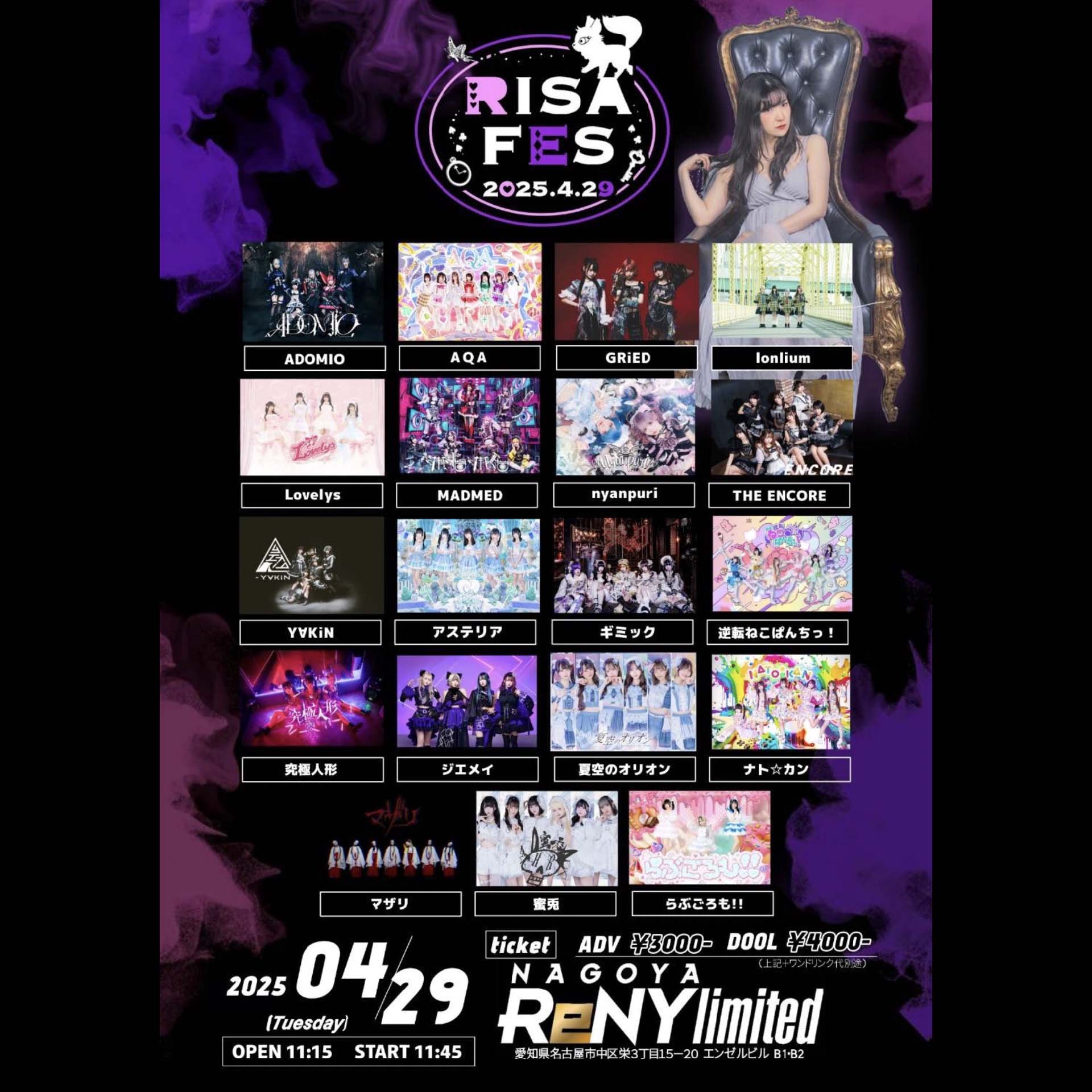 Risa / ジエメイ / MAD MED / マザリ / THE ENCORE / lonlium / GRiED / ADOMIO / 逆転ねこぱんちっ! / loverys / ナト☆カン / 蜜兎 / 究極人形 / ギミック / Y∀KiN / 夏空のオリオン / アステリア / AQA / nyanpuri / らぶごろも!!