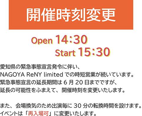 [OPEN/START][1部]12:30 / 13:00 [2部]17:00 / 17:30