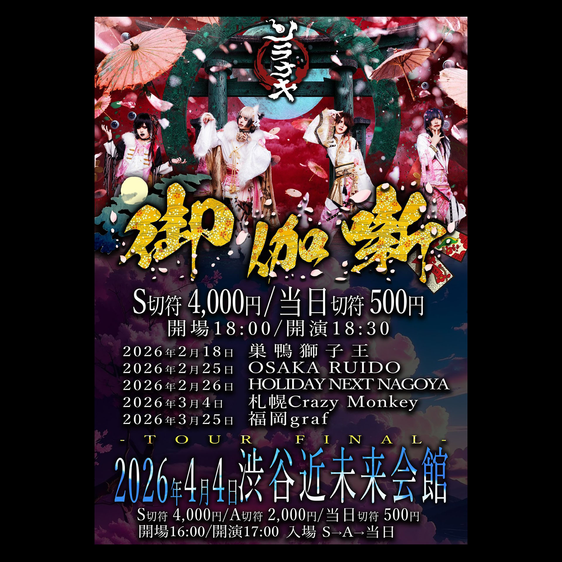 [S切符]¥4,000 (D代別途要)[当日券]¥500 (D代別途要)