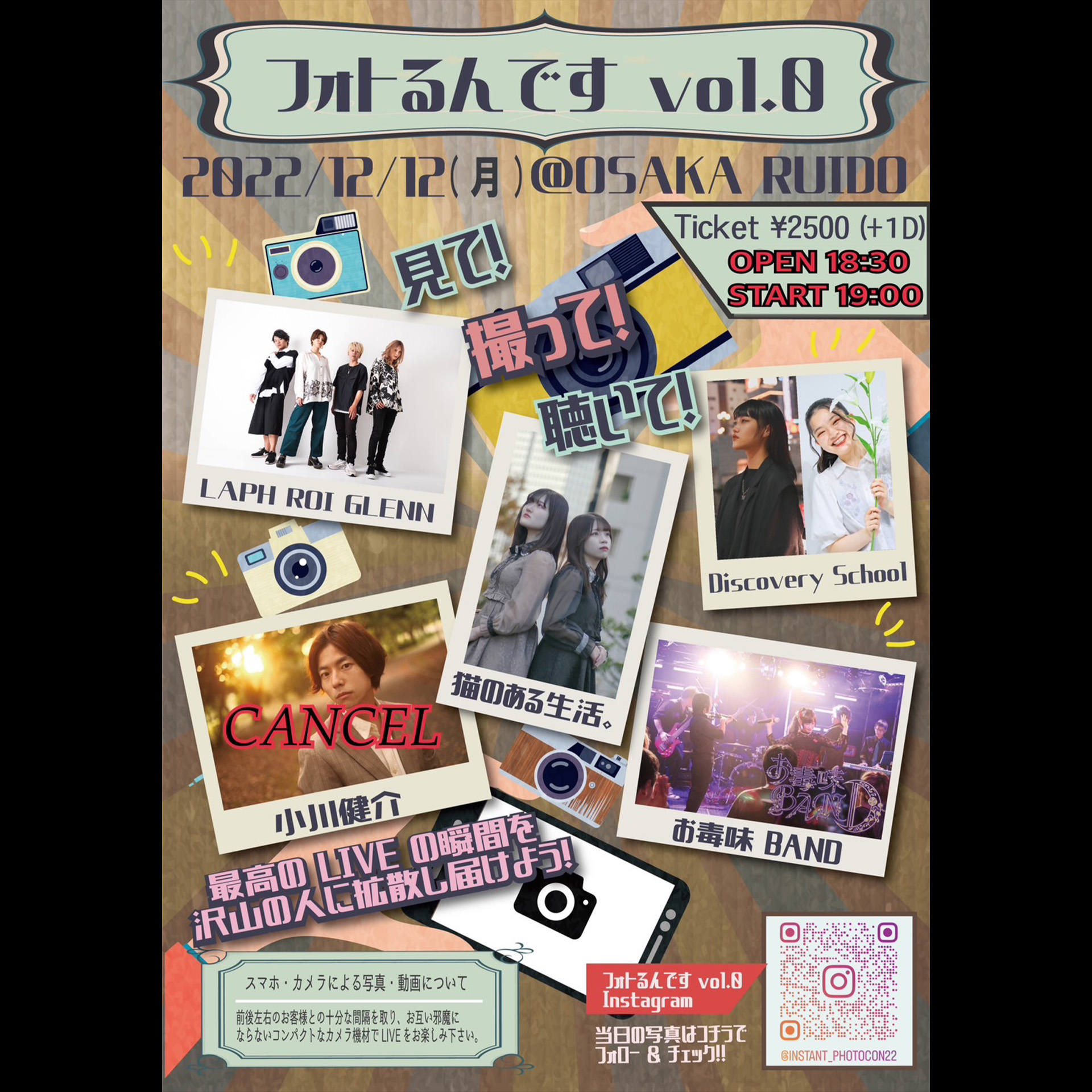 LAPH ROI GLENN/Discovery School(高校生シンガー&ダンス)/お毒味BAND/猫のある生活。■小川健介様出演キャンセルの為、開場開演時間が30分変更になりました。