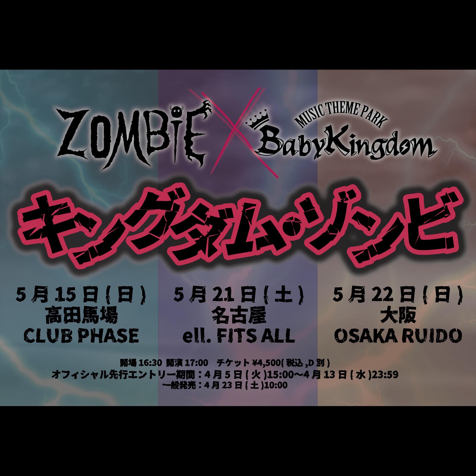 ■オフィシャル先行(抽選)受付URL:https://l-tike.com/st1/kingdomzombie-tk■一般発売(先着)[入場順] オフィシャル先行(A番)→一般(B番)