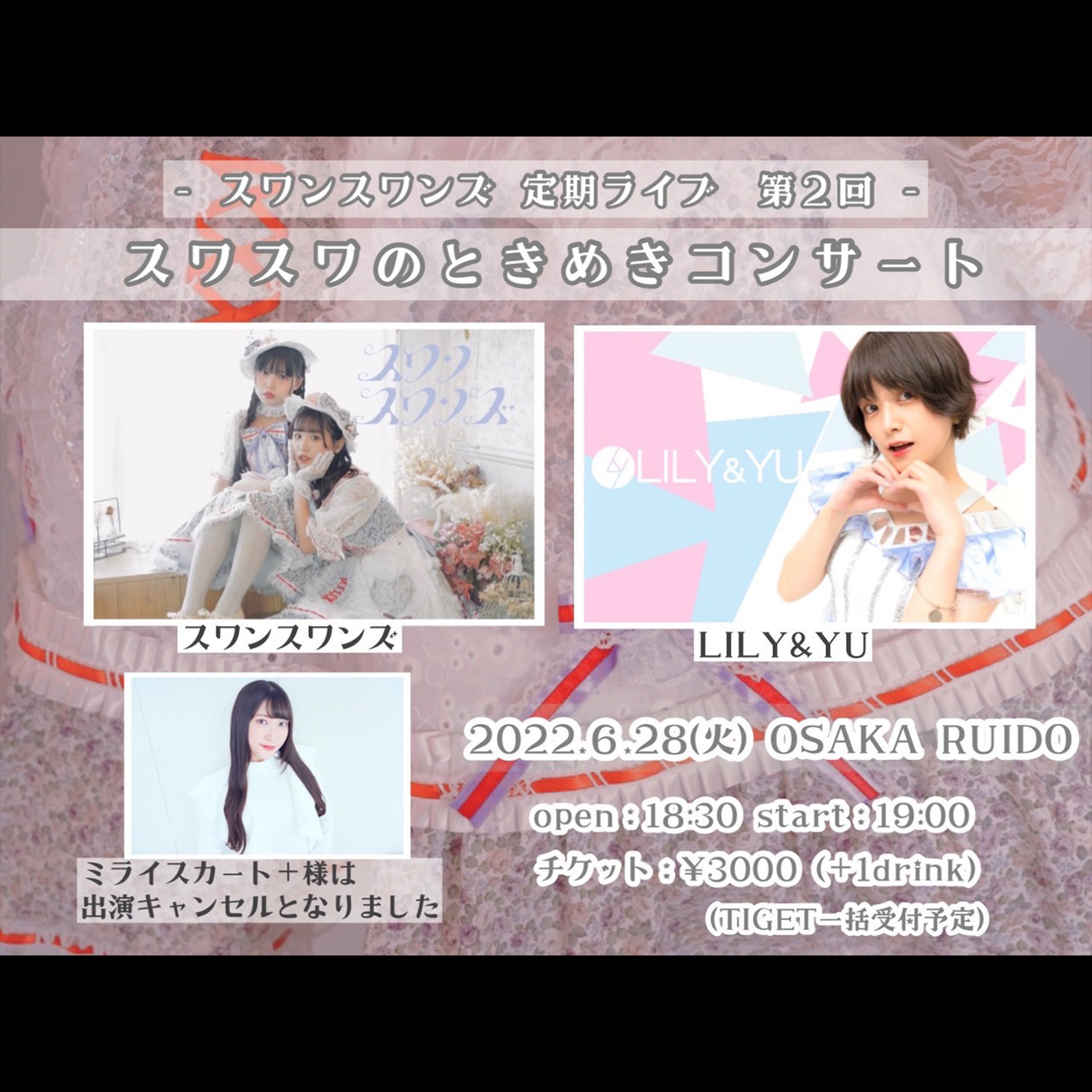 スワンスワンズ[GUEST]LILY&YU※ミライスカート+の出演はキャンセルとなりました。
