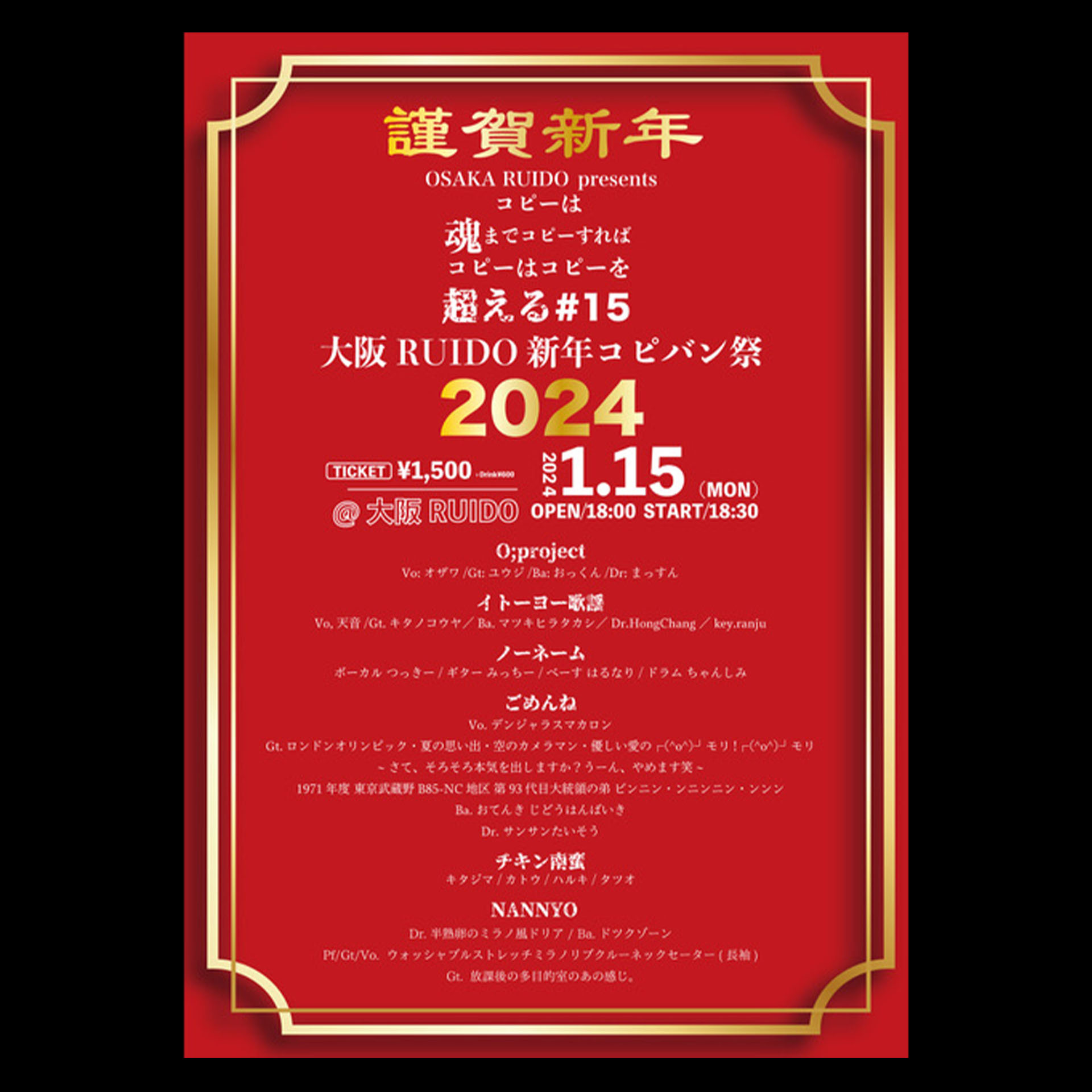 OSAKA RUIDO pre. 『コピーは魂までコピーすればコピーはコピーを超える#15 ~大阪RUIDO 新年コピバン祭 2024~』