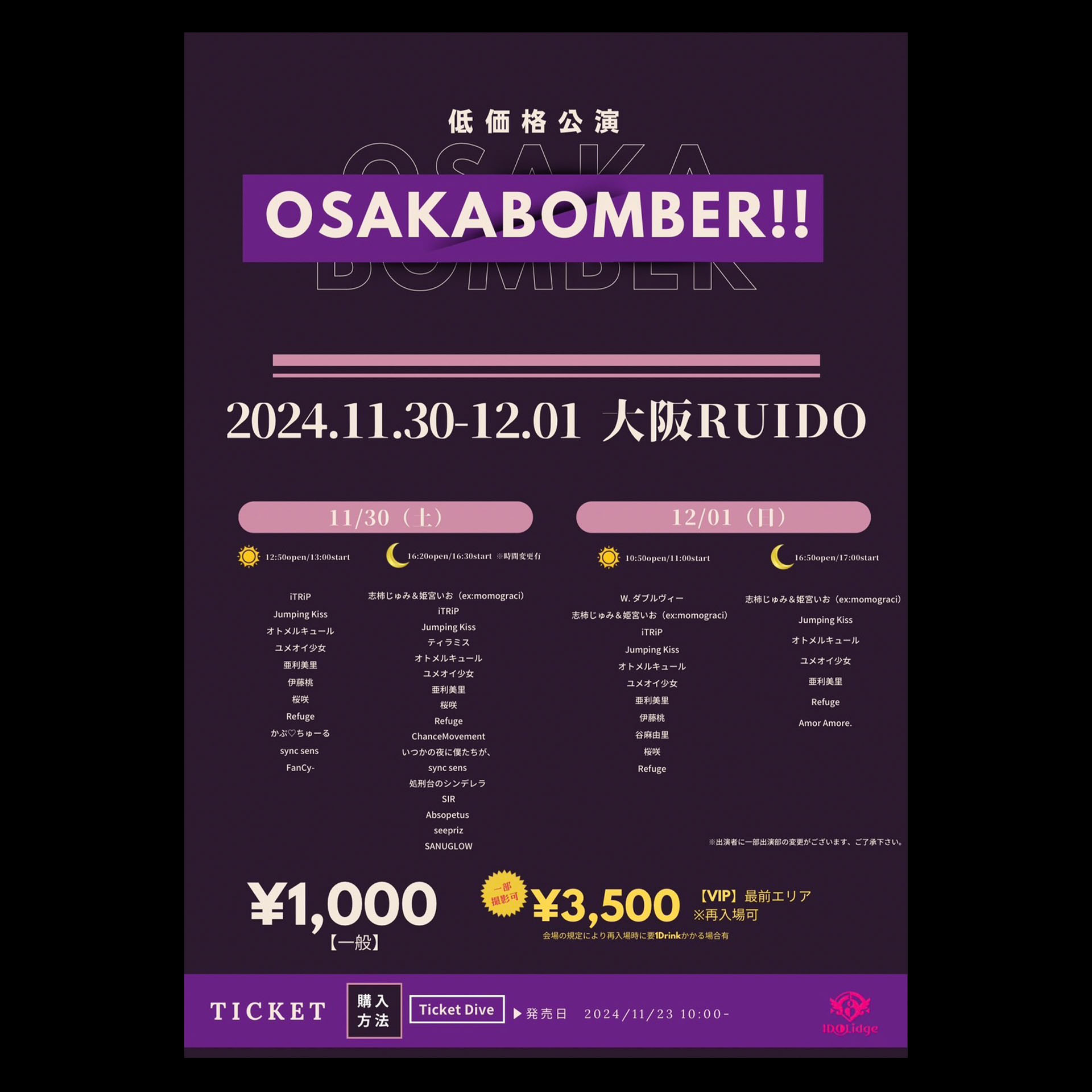 [Sチケット(最前エリア)]¥3,500 / ¥-,― (D代別途要)