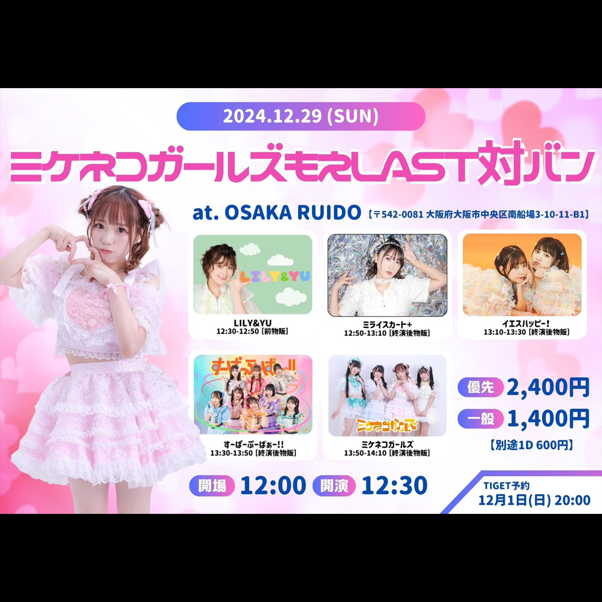 [優先]¥2,400 / ¥2,900 (D代別途要)[一般]¥1,400 / ¥1,900 (D代別途要)