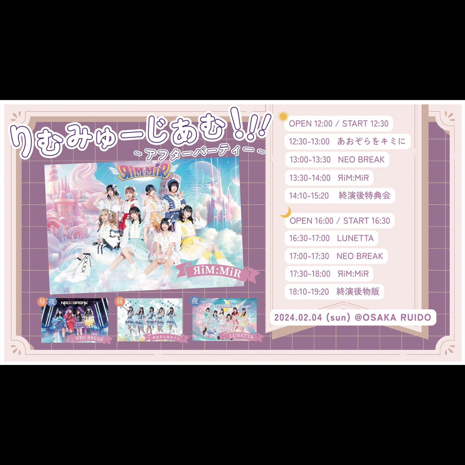 ЯiM:MiR/NEO BREAK/あおぞらをキミに(昼)/LUNETTA(夜)