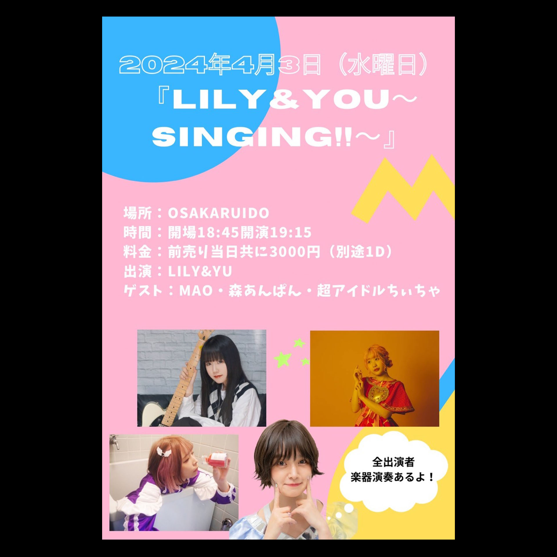 LILY&YU[ゲスト]MAO/超アイドルちぃちゃ※森あんぱん様のご出演はキャンセルとなりました。