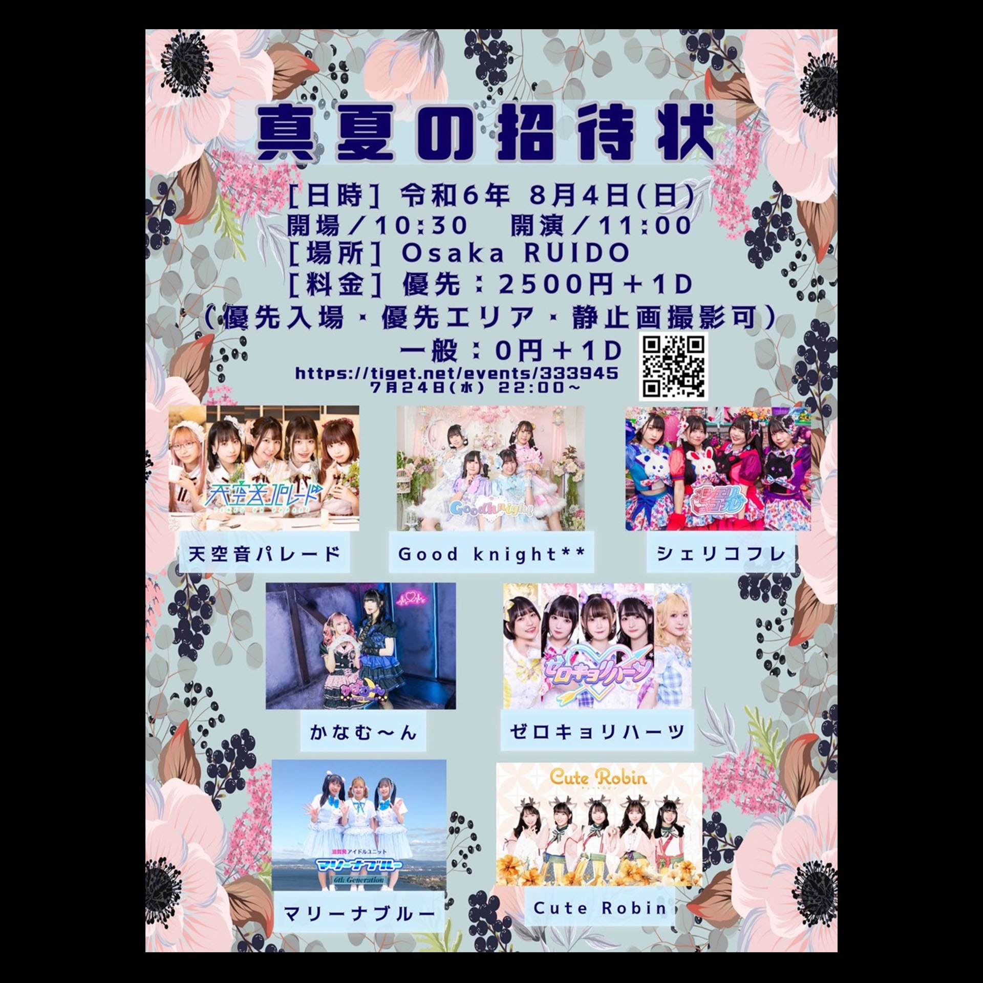 [優先チケット]¥2500 (D代別途要) ※優先入場、優先エリア、静止画撮影可[一般チケット]¥0 (D代別途要)