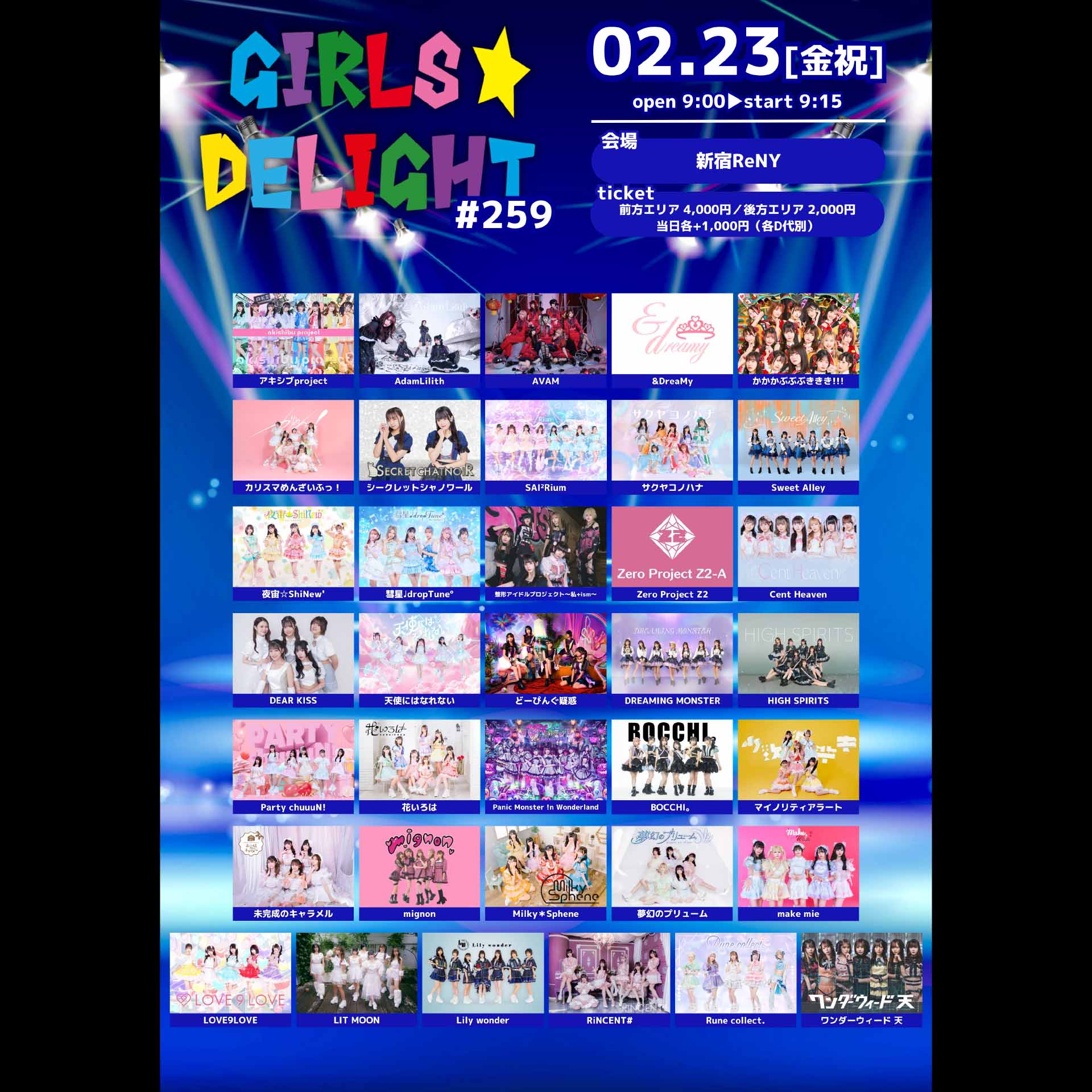 アキシブproject/AdamLilith/AVAM/&DreaMy/かかかぶぶぶききき!!!/カリスマめんざいふっ!/シークレットシャノワール/SAI²Rium/サクヤコノハナ/Sweet Alley/夜宙☆ShiNew’/彗星♩dropTune°/整形アイドルプロジェクト~私+ism~/Zero Project Z2/Cent Heaven/DEAR KISS/天使にはなれない/どーぴんぐ疑惑/DREAMING MONSTER/HIGH SPIRITS/Party chuuuN!/花いろは/Panic Monster !n Wonderland/BOCCHI。/マイノリティアラート/未完成のキャラメル/mignon/Milky*Sphene/夢幻のプリューム/make mie/LOVE9LOVE/LIT MOON/RiNCENT#/Rune collect./ワンダーウィード 天/Lily wonder