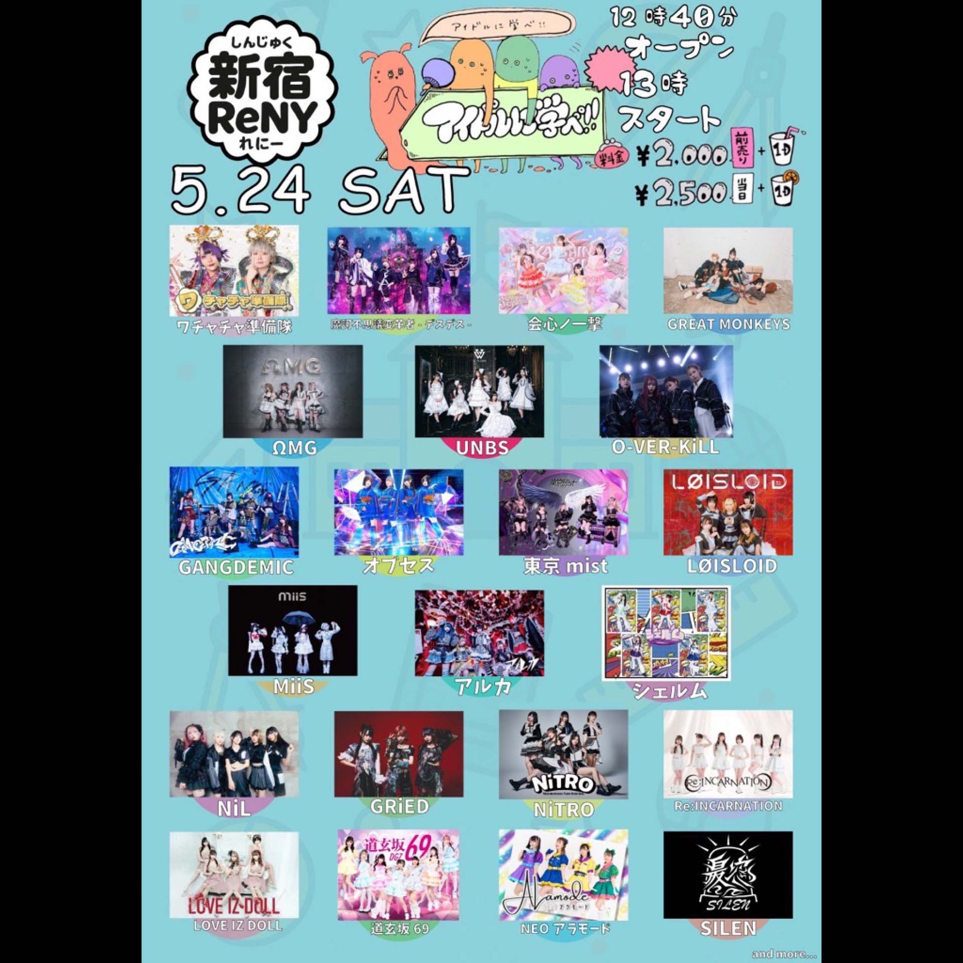 ワチャチャ準備隊/会心ノ一撃/GREAT MONKEYS/魔訶不思議変革者-デスデス-/ΩMG/UNBS/O-VER-KiLL/GANGDEMIC/オブセス/東京mist/LØISLOID/MiiS/ アルカ/NiL/GRiED/NiTRO/Re:INCARNATION/LOVE IZ DOLL/道玄坂69/NEOアラモード/シェルム/SIREN