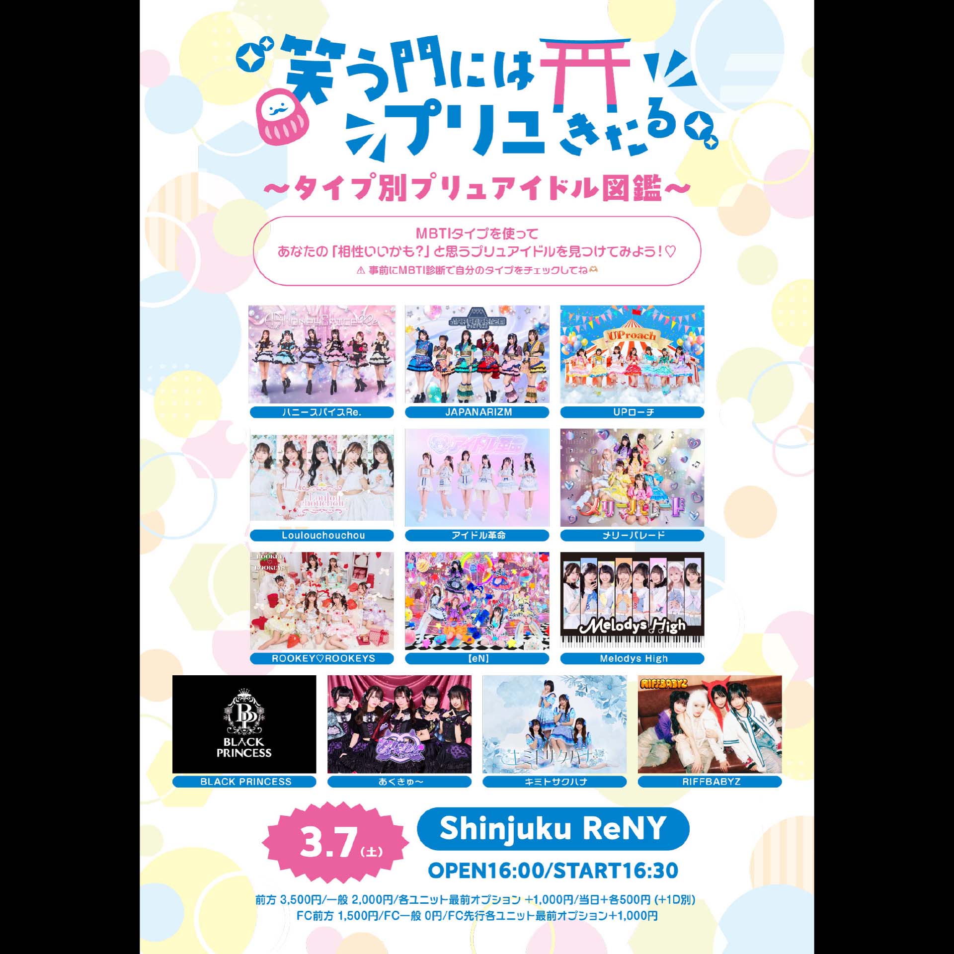 ハニースパイスRe./JAPANARIZM/UPローチ/Loulouchouchou/アイドル革命/メリーパレード/ROOKEY♡ROOKEYS/【eN】/Melodys High/BLACK PRINCESS/あくきゅ~/キミトサクハナ/RIFFBABYZ