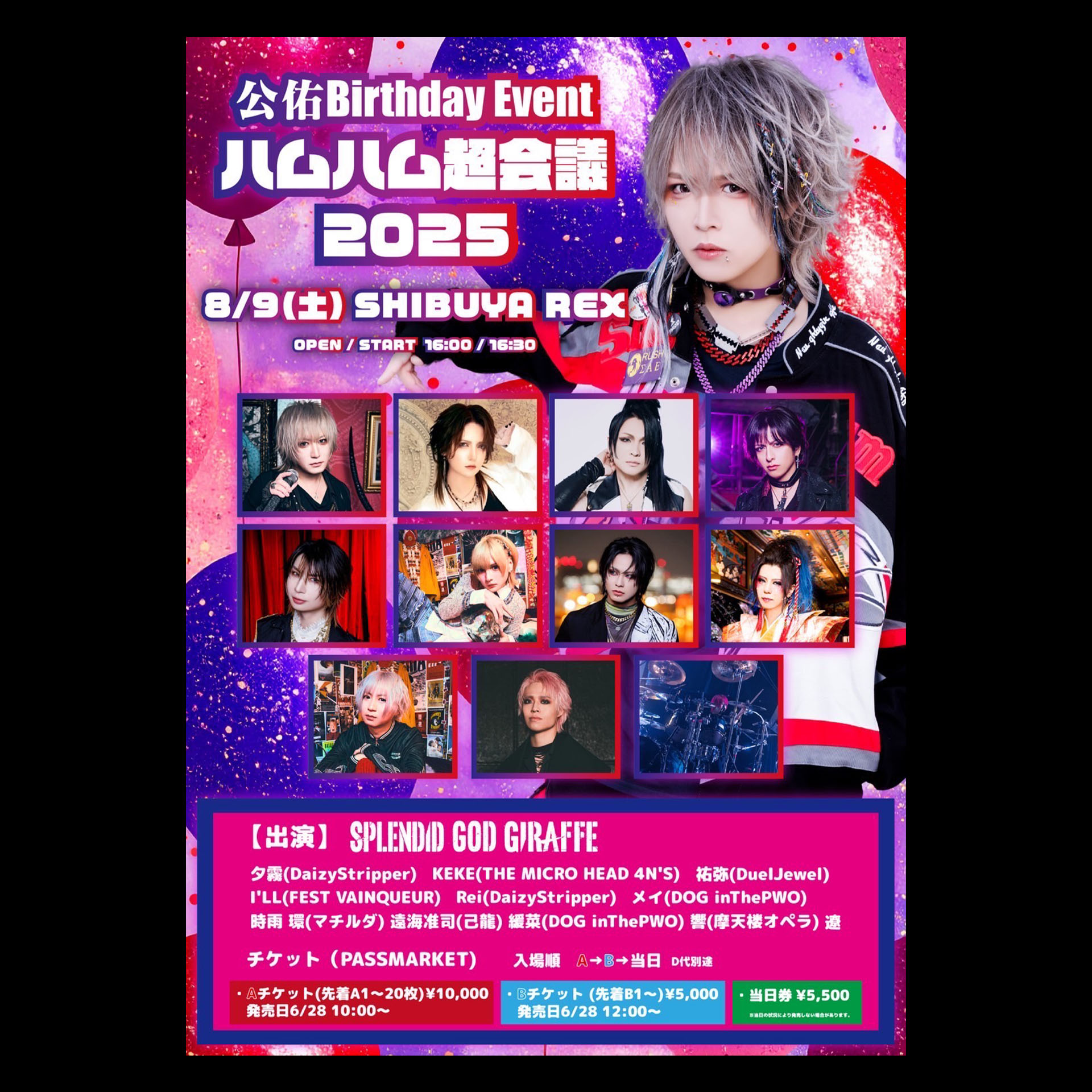 SPLENDID GOD GIRAFFE / 夕霧(DaizyStripper) / KEKE(THE MICRO HEAD 4N'S) / 祐弥(DuelJewel)I'LL(FEST VAINQUEUR) / Rei(DaizyStripper) / メイ(DOG inThePWO) / 時雨 環(マチルダ) / 遠海准司(己龍) / 緩菜(DOG inThePWO) / 響(摩天楼オペラ) / 遼