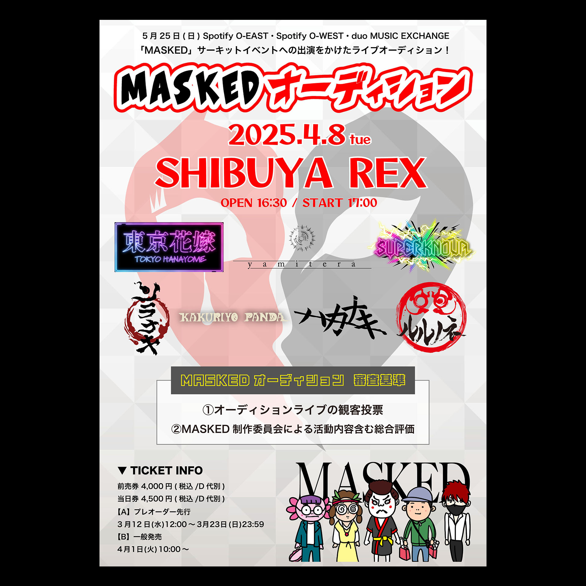 5月25日(日) Spotify O-EAST・Spotify O-WEST・duo duo MUSIC EXCHANGEの渋谷3会場で行う「MASKED」サーキットイベントの出演をかけたオーディションを実施!