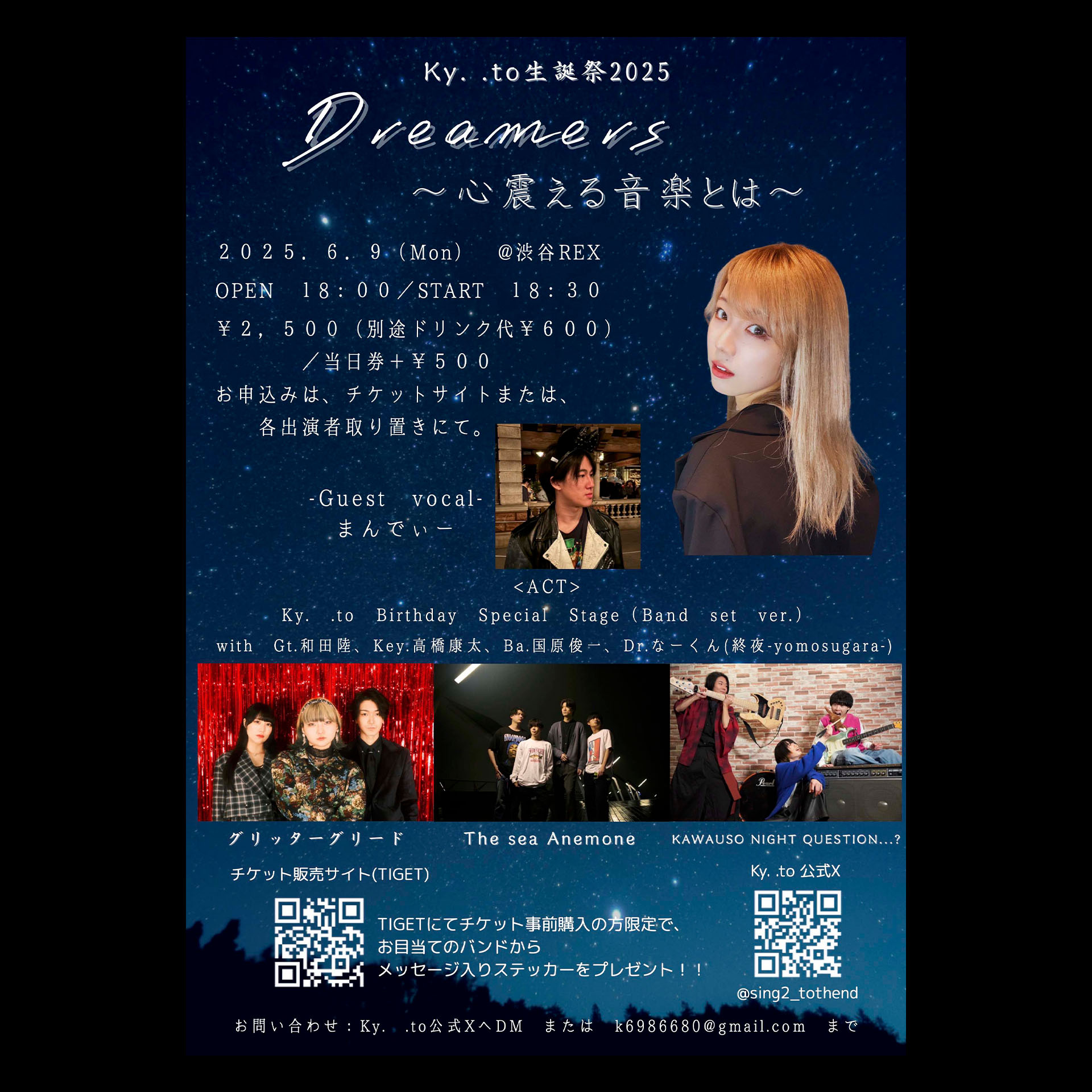 ky. .to Birthday Special Stage(Band set ver.)with Guest Vo.まんでぃー / Gt.和田陸 / Key.高橋康太 / Ba.国原俊一 / Dr.なーくん(終夜-yomosugara-)グリッターグリード/The sea Anemone/KAWAUSO NIGHT QUESTION...?