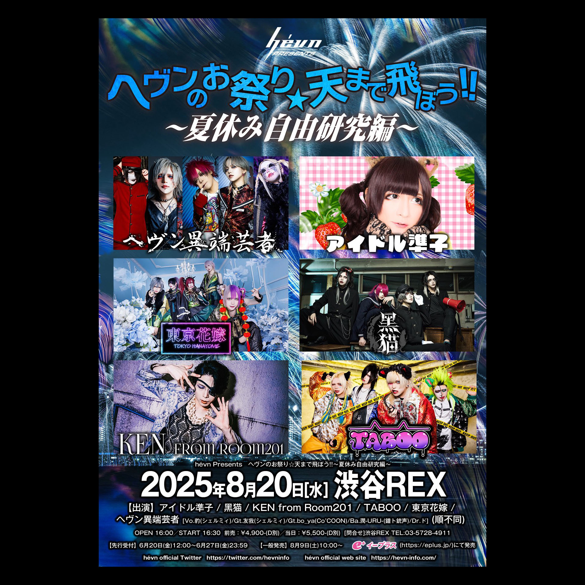 アイドル準子 / 黑猫 / KEN from Room201 / TABOO / 東京花嫁 / ヘヴン異端芸者 (Vo.豹(シェルミィ)/Gt.友我(シェルミィ)/Gt.bo_ya(Co’COON)/Ba.潤-URU-(鐘ト銃声)/ド