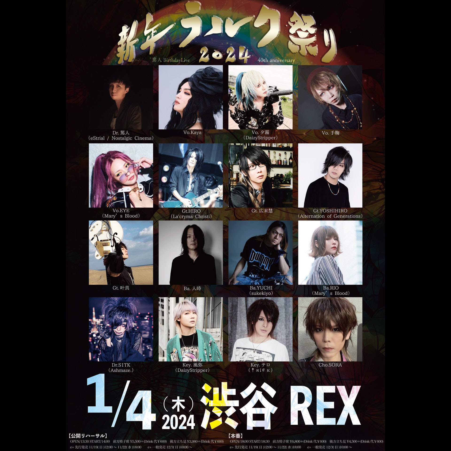 Vo.Kaya / 夕霧(DaizyStripper)/ 手鞠 / EYE(Mary’s Blood)Gt.HIRO(La’cryma Christi)/ 広末慧 / YOSHIHIRO(Alternation of Generations)/ 叶真Ba.人時 / YUCHI(sukekiyo)/ RIO(Mary’s Blood)Dr.篤人(eStrial / Nostalgic Cinema)/ S1TK(Ashmaze.)Key.風弥(DaizyStripper)/ テロ(†яi¢к)Cho.SORA・友情出演:Vn.Jumpei(Nostalgic Cinema)