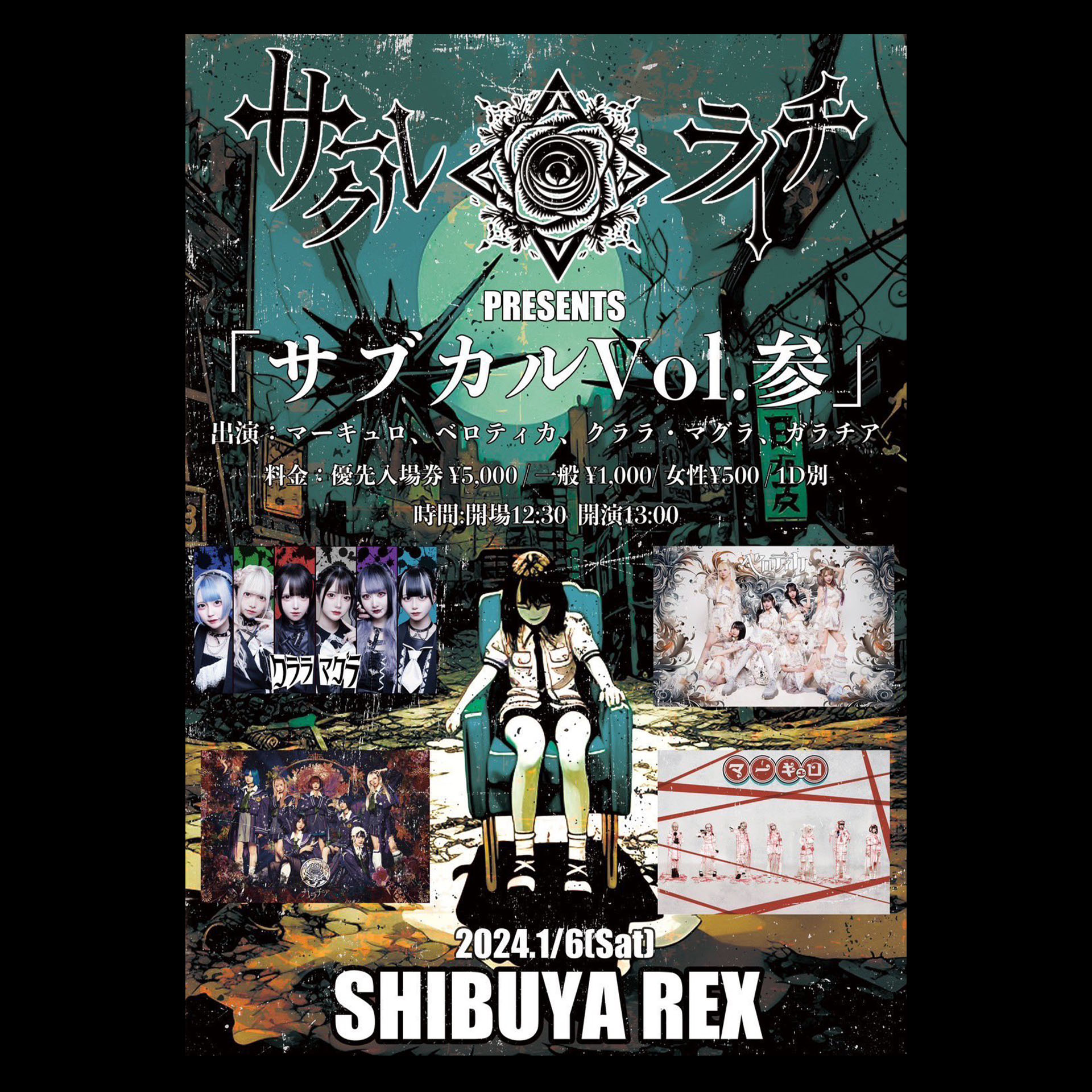 優先入場¥5,000+D / 一般¥1,000+D / 女性¥500+D