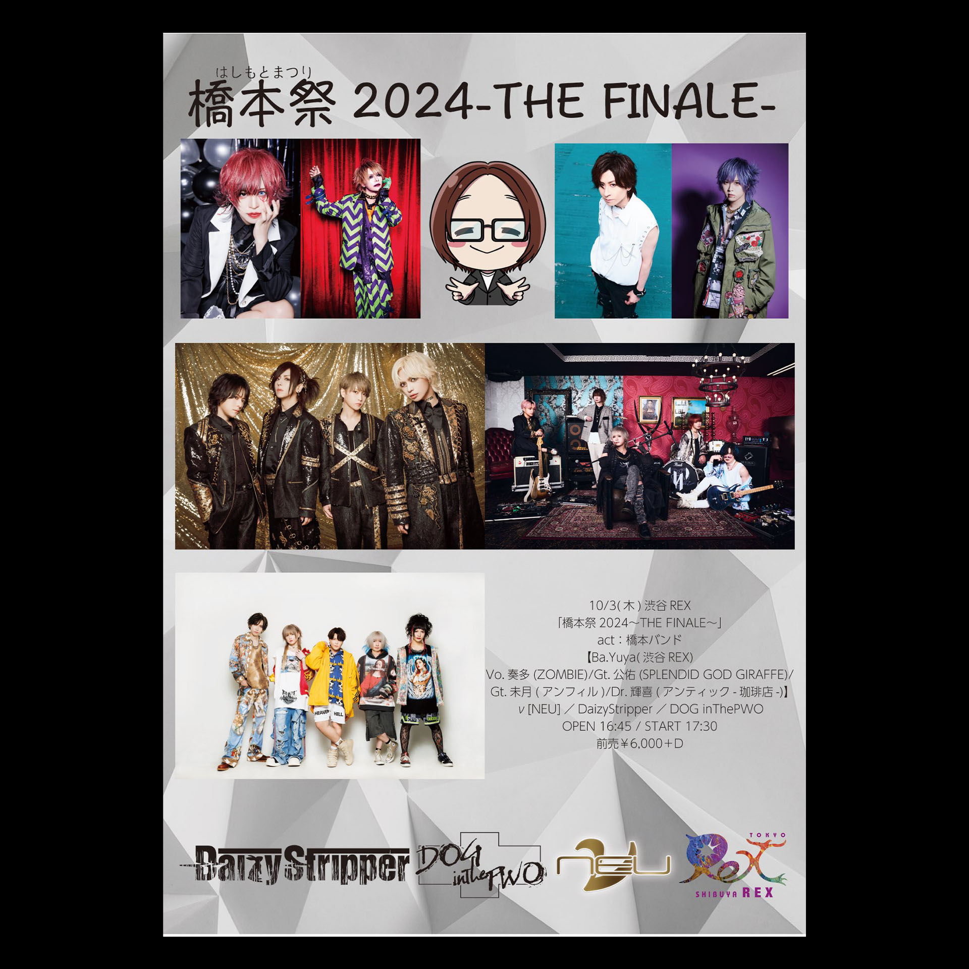 橋本バンド【Ba.Yuya(渋谷REX)/Vo.奏多(ZOMBIE)/Gt.公佑(SGG)/Gt.未月(アンフィル)/Dr.輝喜(アンティック-珈琲店-)】ν[NEU]/DaizyStripper/DOG inThePWO