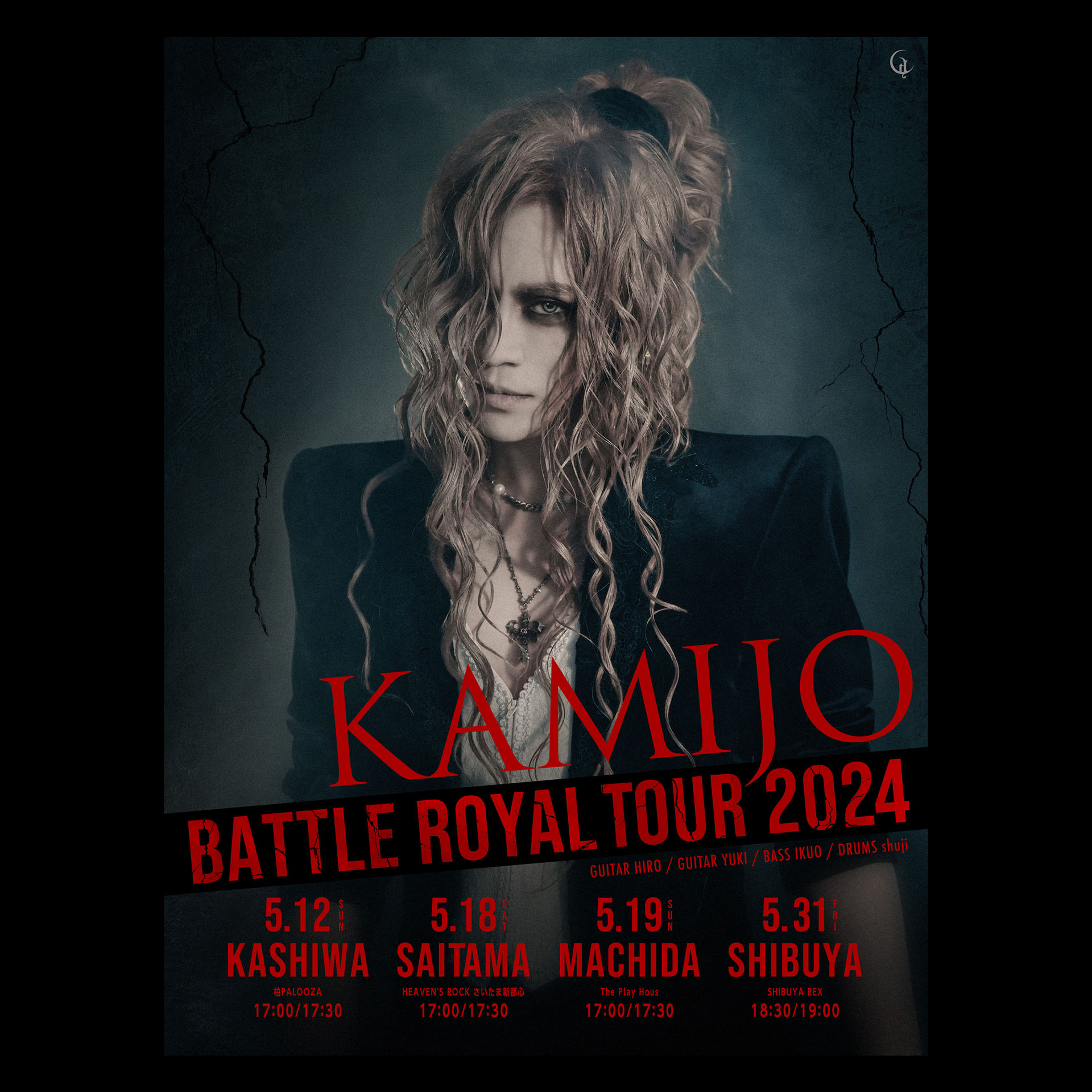 KAMIJO〈BAND MEMBER〉 Guitar : HIRO (La'cryma Christi) Guitar : YUKI (DUSTAR-3,Rayflower, ex.Λucifer) Bass : IKUO (BULL ZEICHEN 88, Rayflower) Drums : shuji (ex.Janne Da Arc)