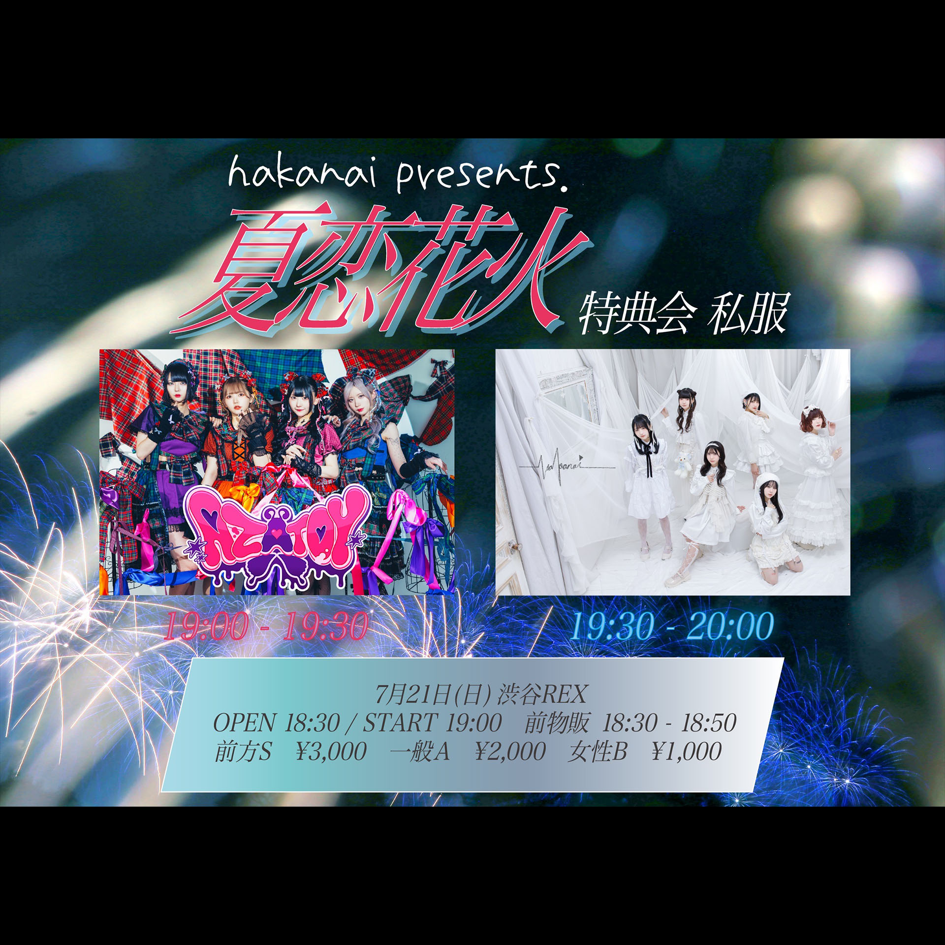S¥3,000+D / A¥2,000+D / 女性¥1,000+D