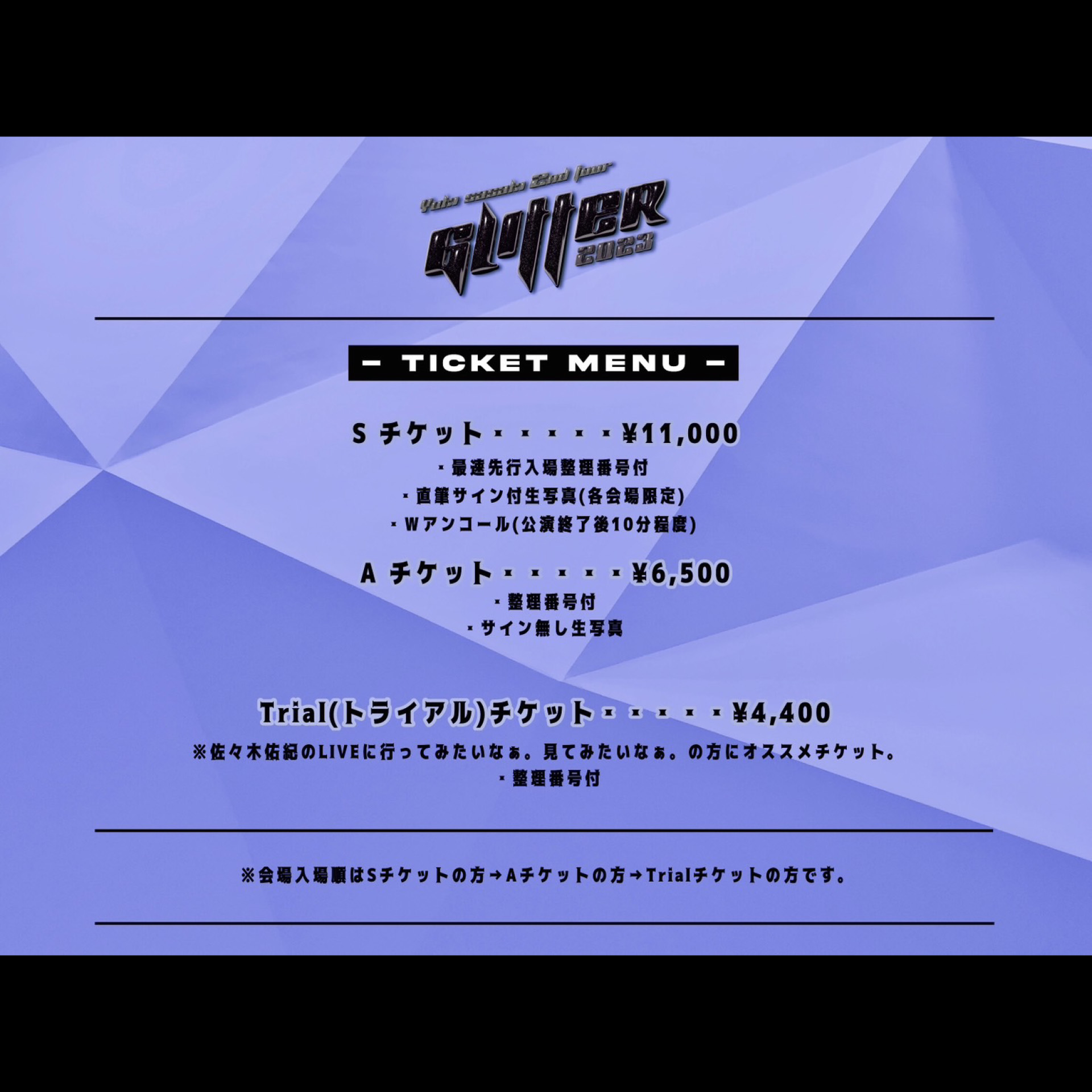 S¥11,000 / A¥6,500 / Trial¥4,400(D代別途要)