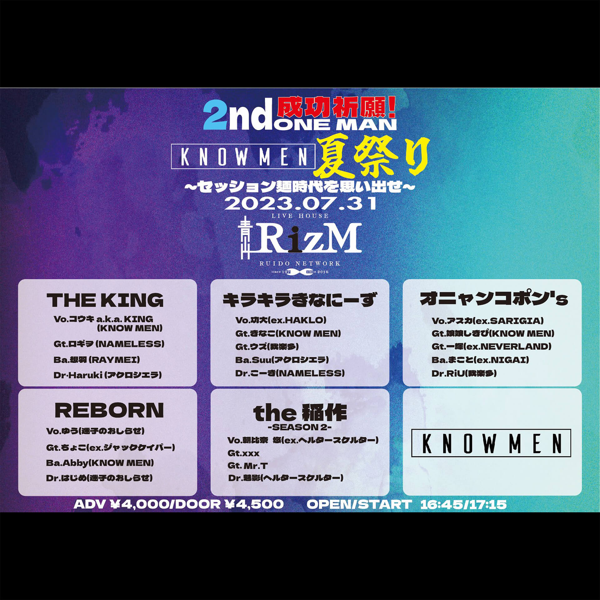 2nd ONEMAN LIVE成功祈願!KNOW MEN夏祭り~セッション麺時代を思い出せ~