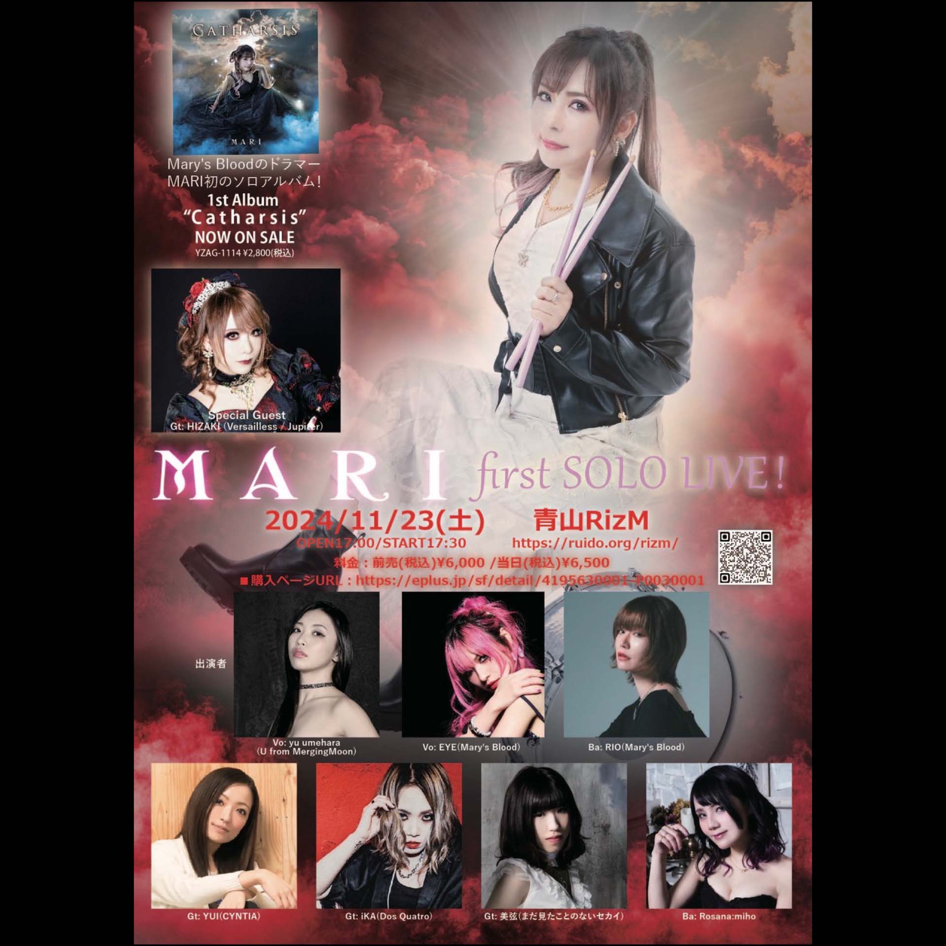 Dr: MARI(Mary's Blood)/Vo: U(MergingMoon) /Vo: EYE(Mary's Blood)/Gt: YUI(CYNTIA)/Gt: iKA(Dos Quatro)/Gt: 美弦(まだ見たことのないセカイ)/Ba: Rosana:miho/Ba: RIO(Mary’s Blood)