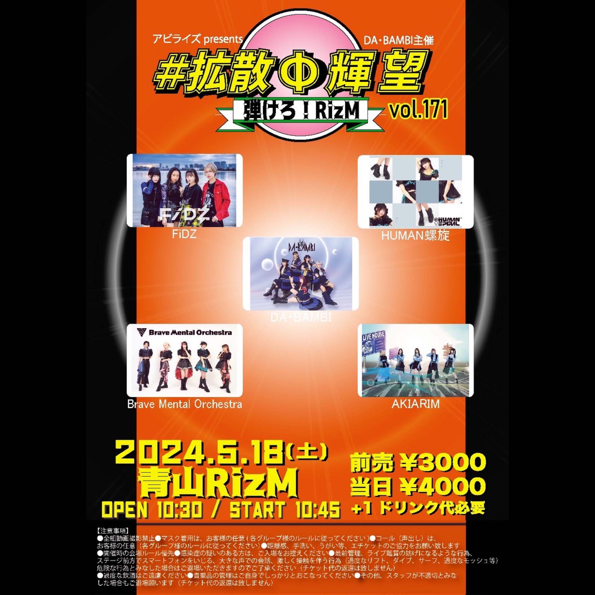 DA・BAMBI/FiDZ/AKIARIM/HUMAN螺旋/Brave Mental Orchestra