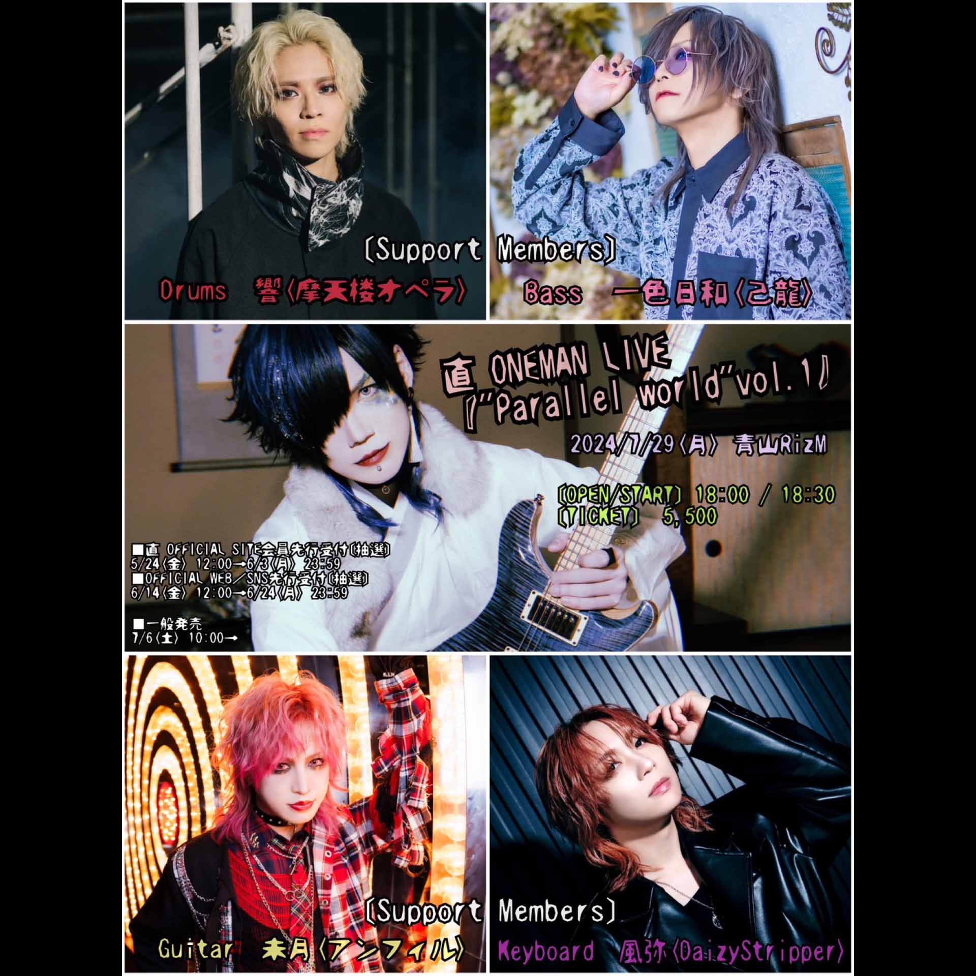 直(DaizyStripper) [Support Members] Guitar :未月(アンフィル)/Bass:一色日和(己龍)/Keyboard:風弥(DaizyStripper) /Drums:響(摩天楼オペラ)