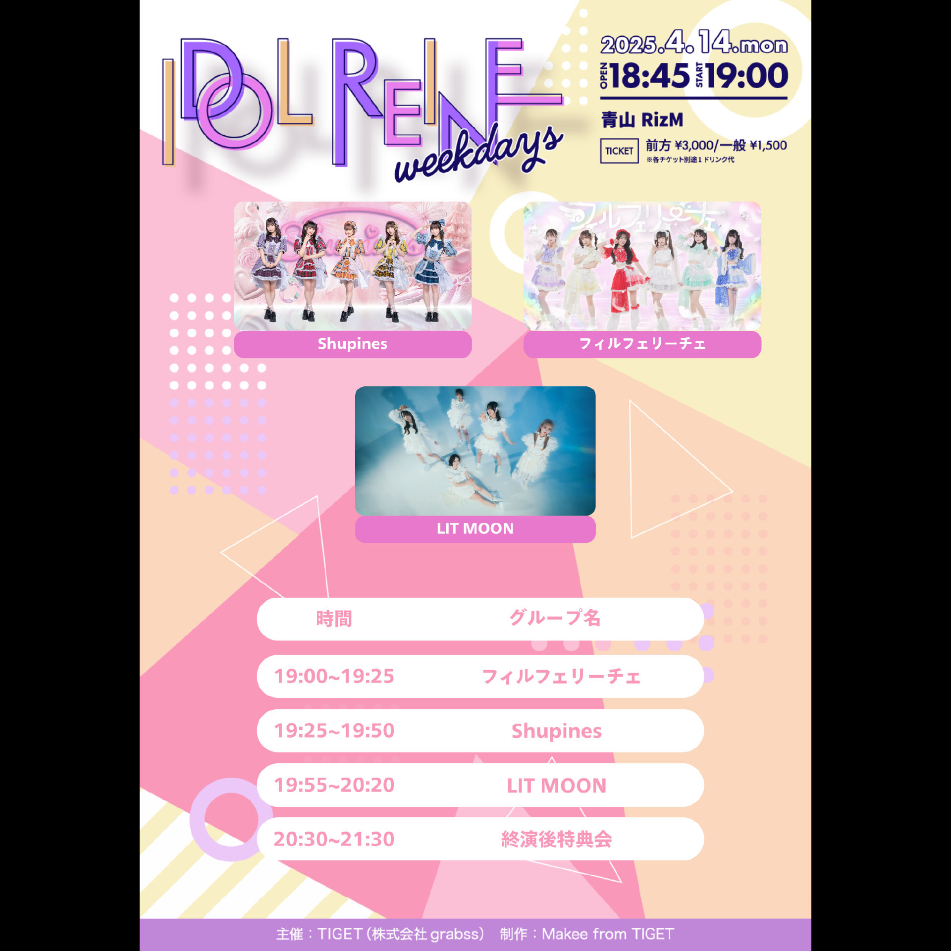 前方エリア3,000円/一般エリア1,500円/(1D別) 当日各+500円