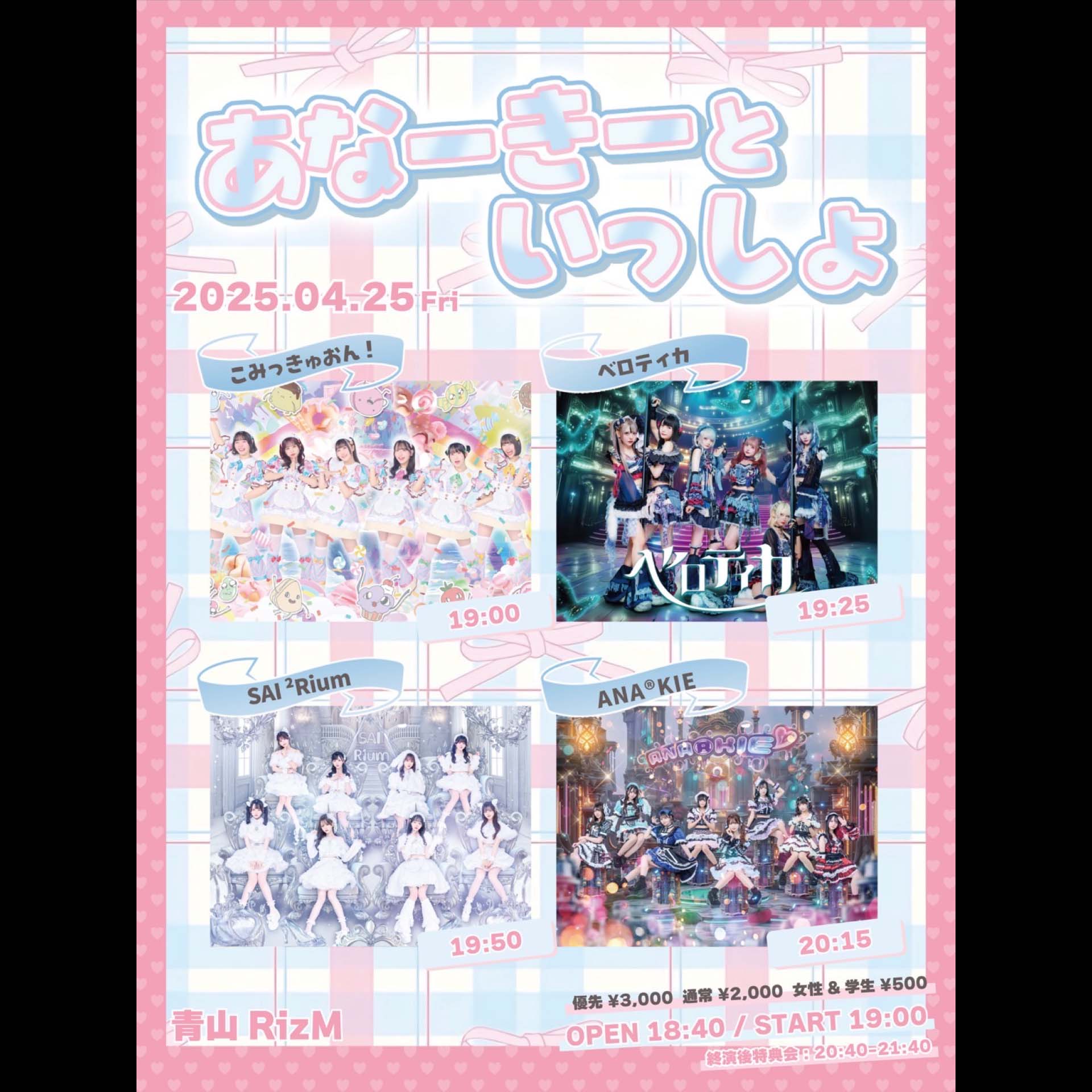 優先¥3,000/通常 ¥2,000/女性・学生 ¥500(D代別途要)