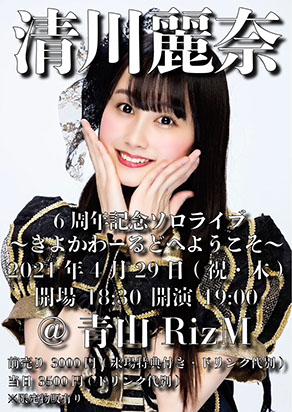 [TITLE] 『清川麗奈 6周年記念ソロライブ』~きよかわーるどへようこそ~